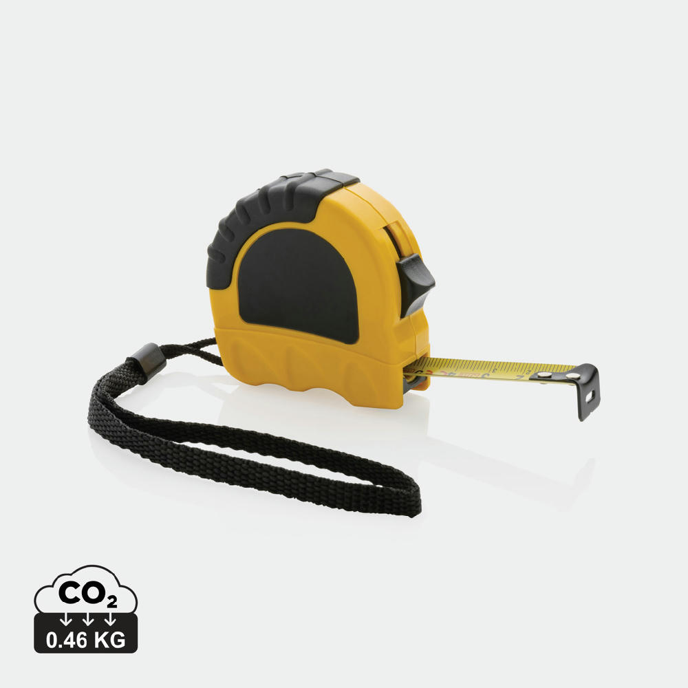3 Meter Maßband aus RCS (Recycled Claim Standard)-zertifiziert recyceltem ABS. Gesamter Recyclinganteil: 21% basierend auf dem Gesamtgewicht des Artikels. Die RCS-Zertifizierung gewährleistet eine vollständig zertifizierte Lieferkette der recycelten Materialien. Mit Deluxe-TRP-Gummigriff für einen sicheren Halt. Mit Entriegelungs-/Verriegelungsknopf. Das gelbe 16mm Maßbandband hat einen schwarzen Haken aus Karbonstahl. Mit Polyester-Armband. Verpackt in FSC®-Mix-Kraftverpackung.