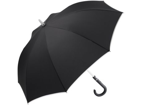 Automatik-Stockschirm in mittlerer Größe mit variabler LED-Beleuchtung. Windproof-System. Automatisch öffnend, transparenter Stock mit LED-Beleuchtung. Soft-Touch-Rundhakengriff mit integrierter silberner Auslösetaste sowie Griffring und Werbeanbringungsmöglichkeit. Micro-USB Ladeanschluss. Taste zur Auswahl der Leuchtfarbe oder Farbwechsel. Inkl. Ladekabel.