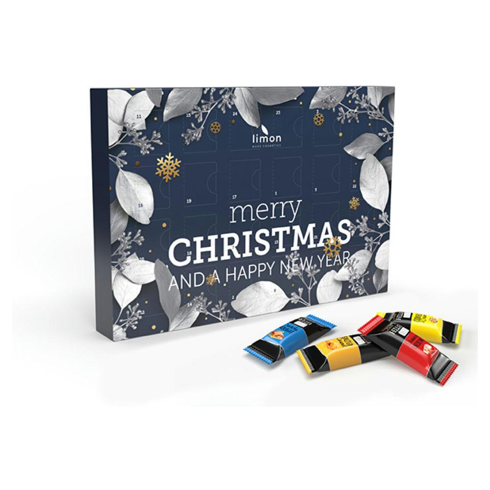 Ein hochwertiger Adventskalender mit großer Fläche für eine individuelle Werbebotschaft. Für den Adventskalender stehen verschiedene Füllvarianten zur Verfügung. Aufgrund seiner Form und einer praktischen Wandaufhängung lässt sich dieser auf dem Tisch aufstellen oder aufhängen. Wie alle unsere Adventskalender ist auch dieser komplett aus FSC®-zertifiziertem Papier produziert. Variante: Adventskalender Multi | Milka Favourites | 4c Euroskala