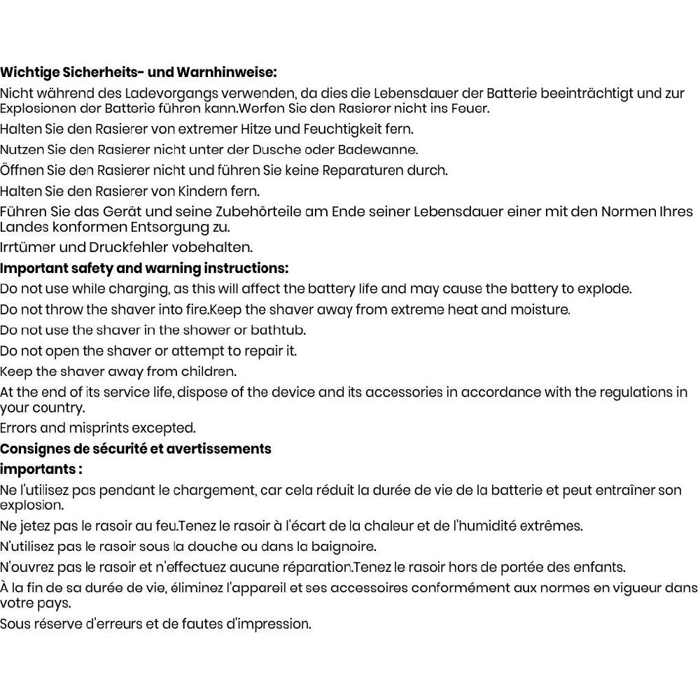Mit zwei Edelstahl- Scherblättern, kraftvollem Motor und 900mAh Akkubatterie, Ladestandanzeige, magnetischer Abdeckkappe und Reisesicherung. Kann per Akku oder Kabel betrieben werden. Unter fließendem Wasser auswaschbar.