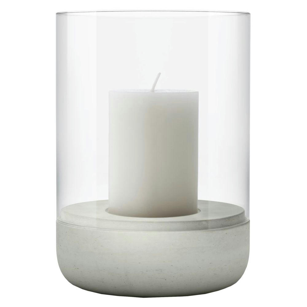 Material: Beton, Glas klar. Farbe: Beton. Maße:Ø 15 cm, Höhe 22,5 cm.