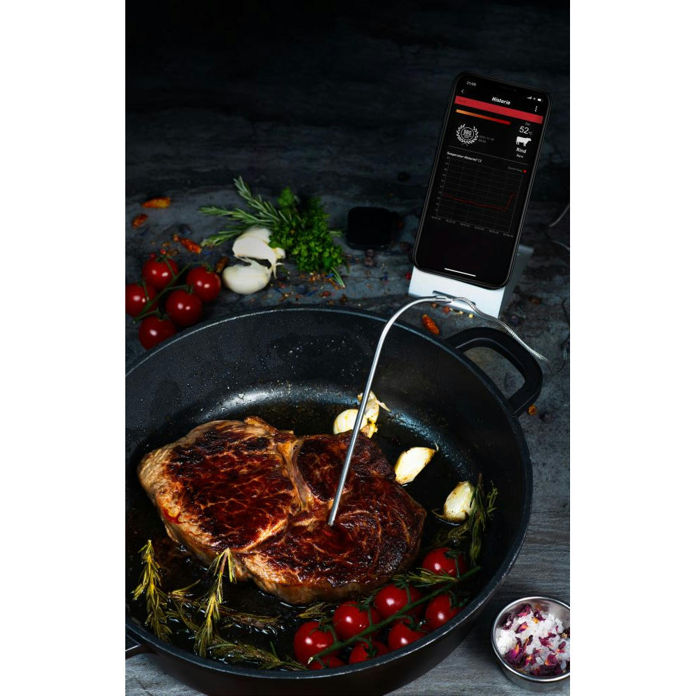 Das Grillthermometer informiert Sie zuverlässig. App „ToGrill“ mit umfangreichem Menü. Sendeeinheit mit Batterie (CR2032 im Lieferumfang)