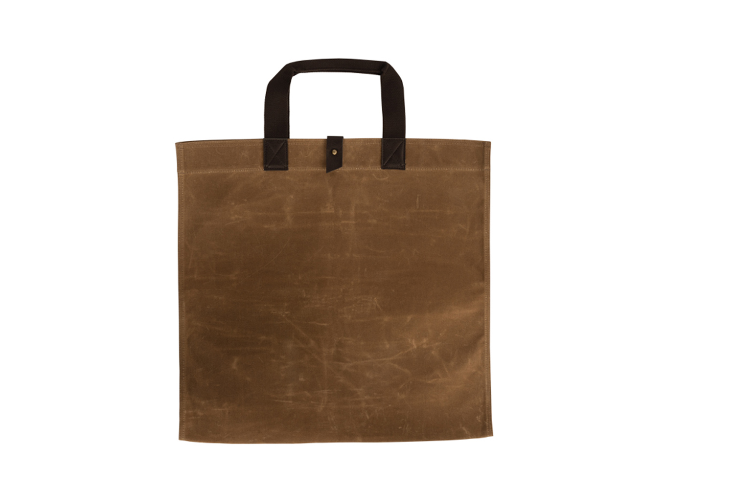 Gewachste Baumwolle, Träger aus dunkelbraunem Webband, Akzente in Lederimitat.