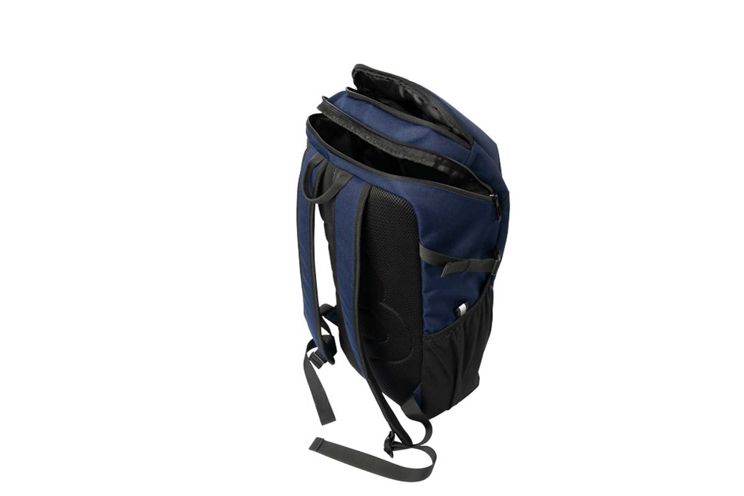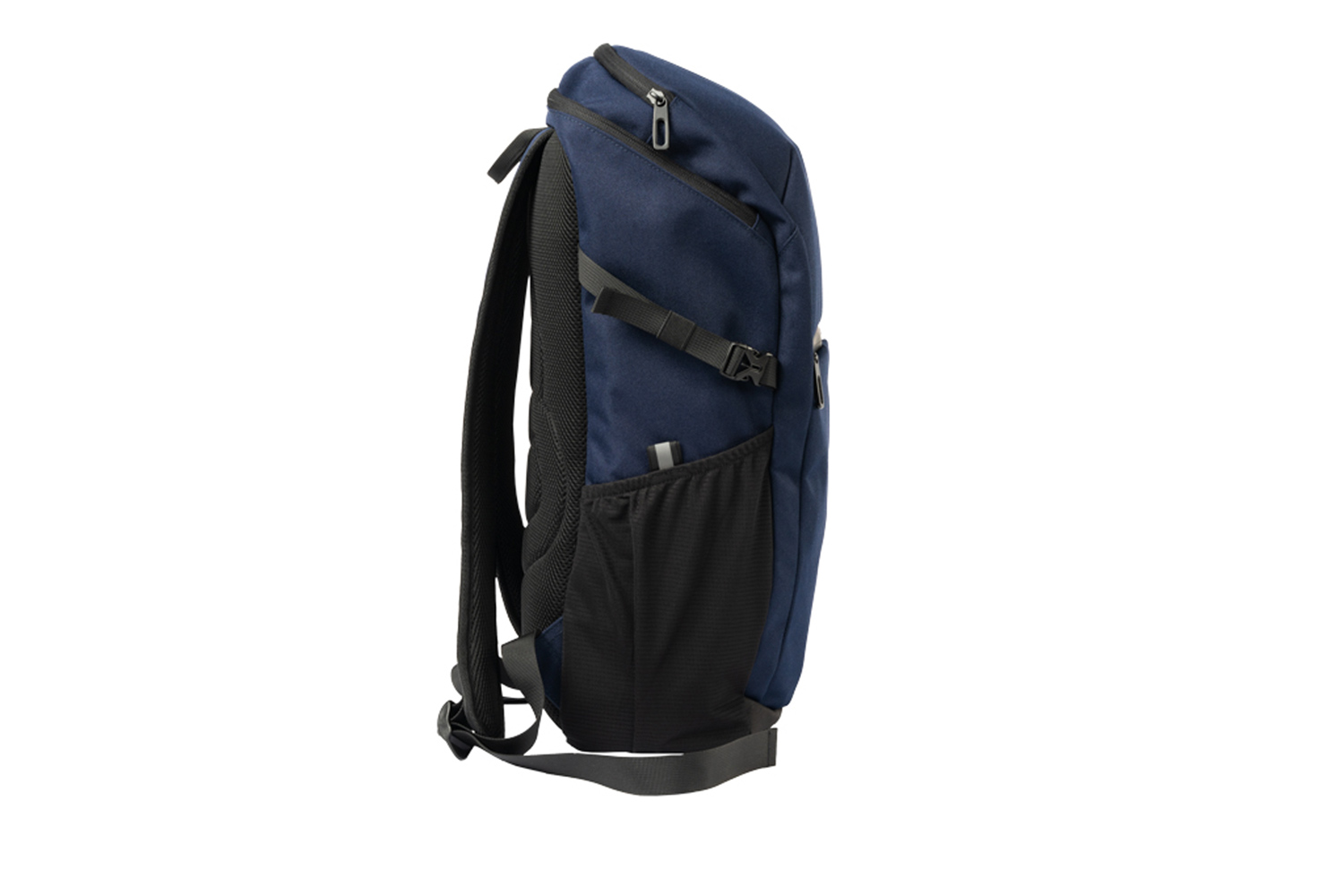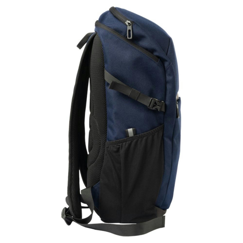 Mit schwarzen Accessoires, gummierter RV an Fronttasche, seitlich je elastisches Mesh mit Reflektordetail und verstellbarem Gurt, verstärkter Boden, oben zusätzliches RV Fach, gepolsterter Rücken und Träger, zusätzlicher Tragegriff, Innen: gepolstertes Laptop Fach, 2 Steckfächer.