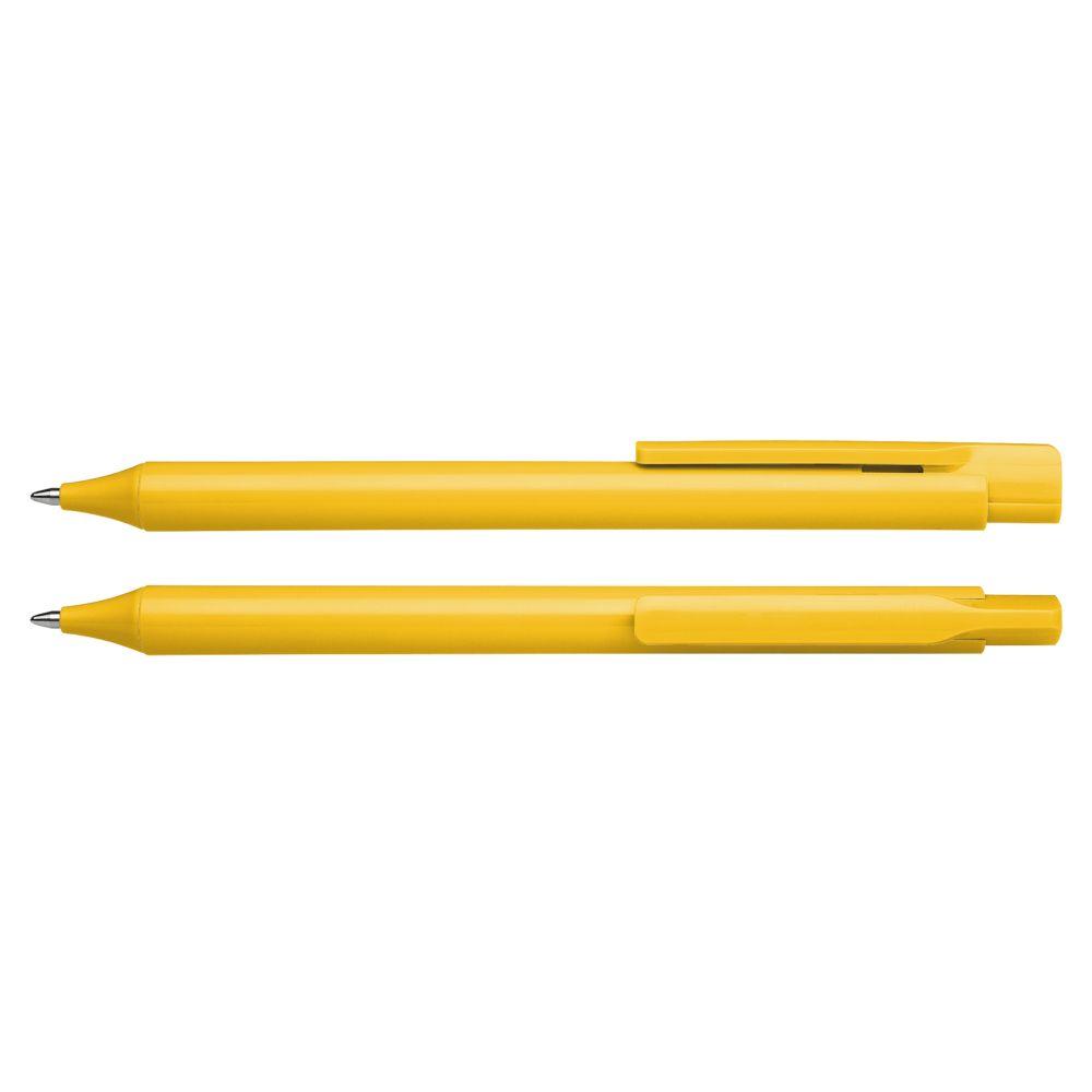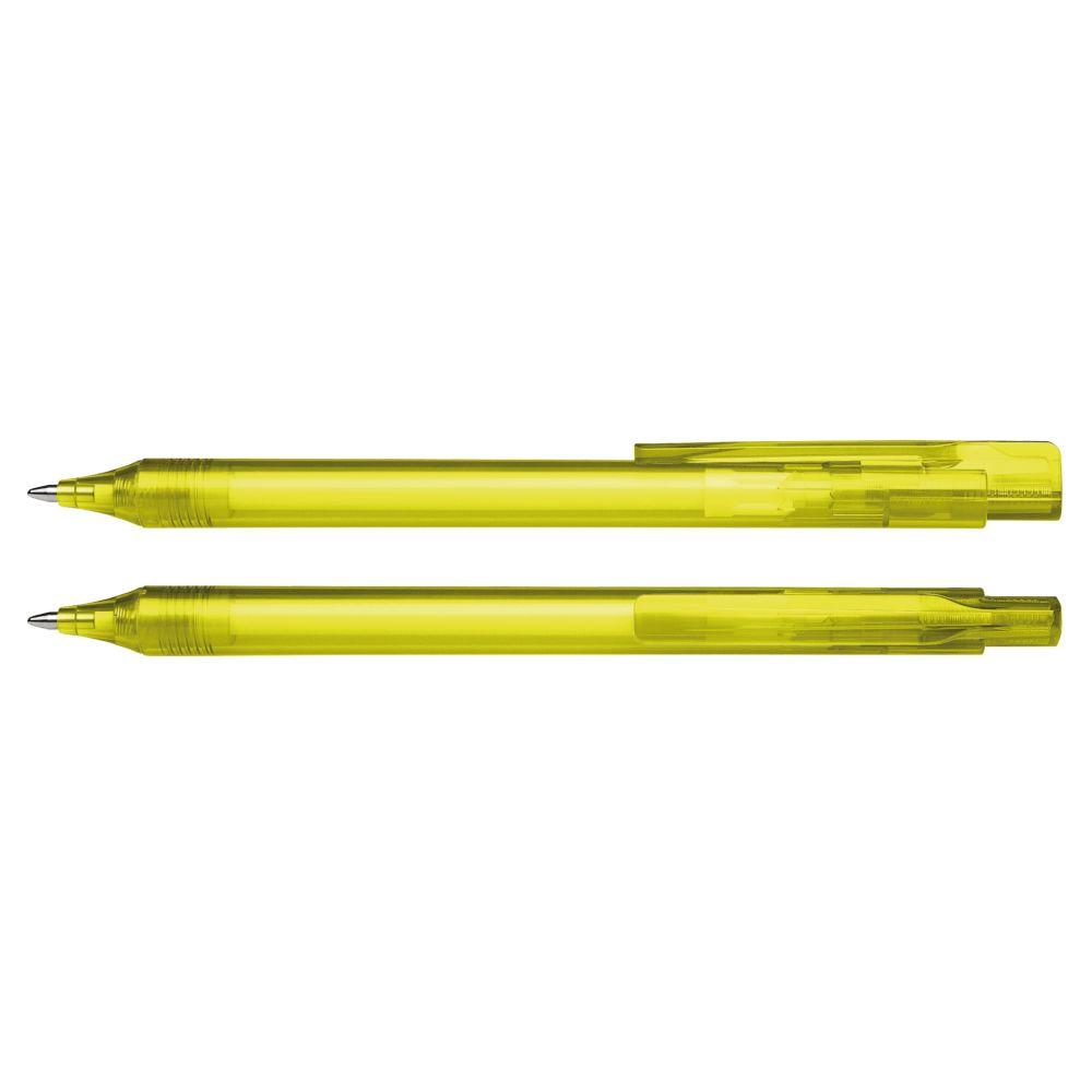 Druckkugelschreiber aus transparentem oder opakem Kunststoff mit glänzender Oberfläche. Ausgestattet mit Schneider-Mine 774 M. Produkt mit finanziellem Klimabeitrag: Kompensation in Höhe der unvermeidbaren Emissionen in ein zertifiziertes Klimaschutzprojekt. Gehäuse: gelb-transparent. Schreibfarbe: blau.