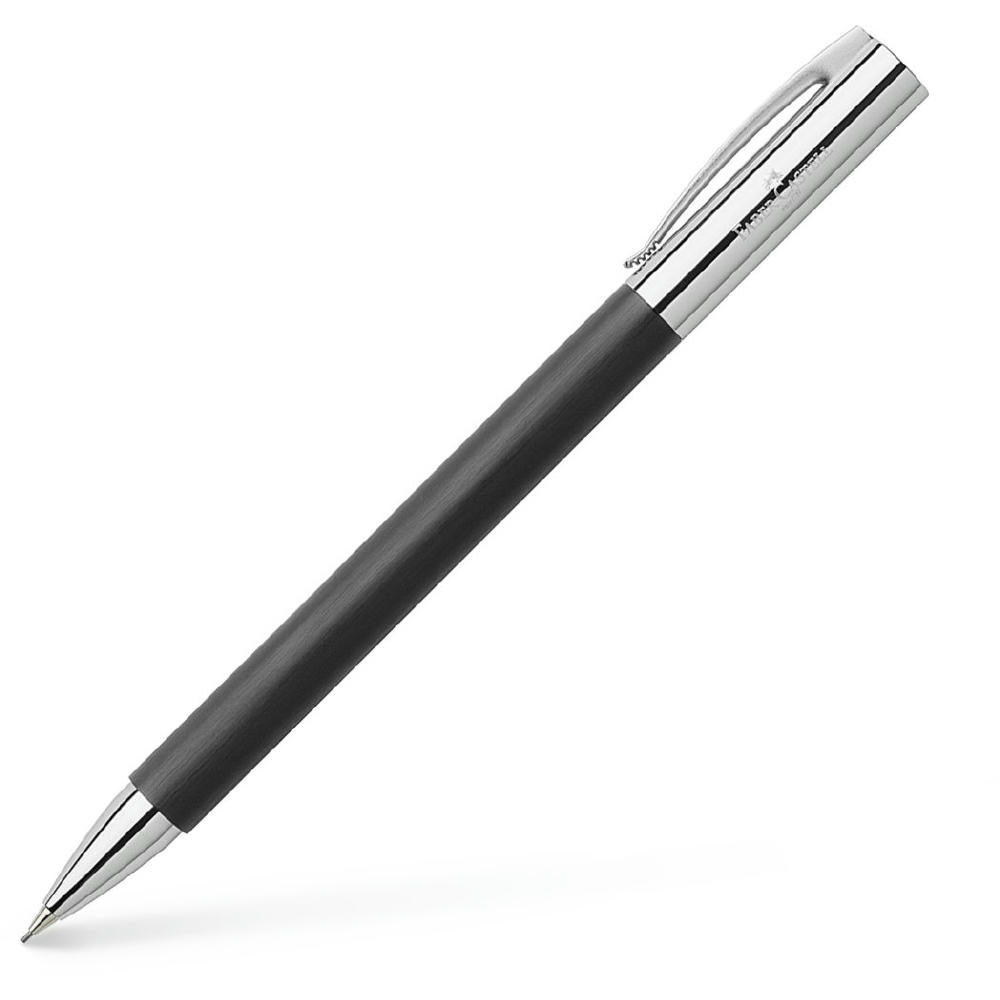 0,7 mm Mine, austauschbarer Radierer unter der Kappe.Schwarzer Schaft aus gebürstetem Edelharz, hochglänzend verchromte Metallteile. Eingelegt in die weiße Kartonage mit Lederbändchen. Preis inkl. Lasergravur auf der Kappe