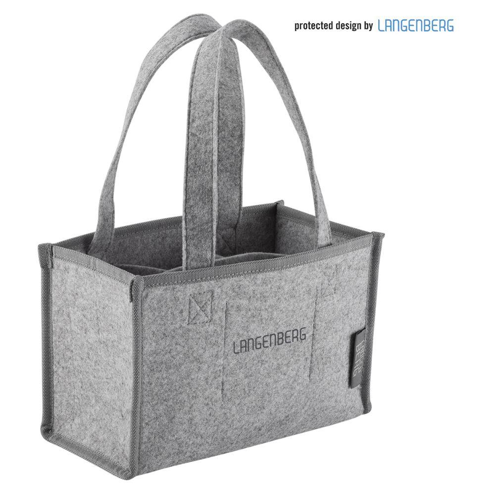 Filzflaschentasche aus 100 % recyceltem PET mit Tragegriffen, offenes Hauptfach mit Innenaufteilung für 6 Flaschen bis zu 0,75l Tragegriffe Volumen: ca. 5l