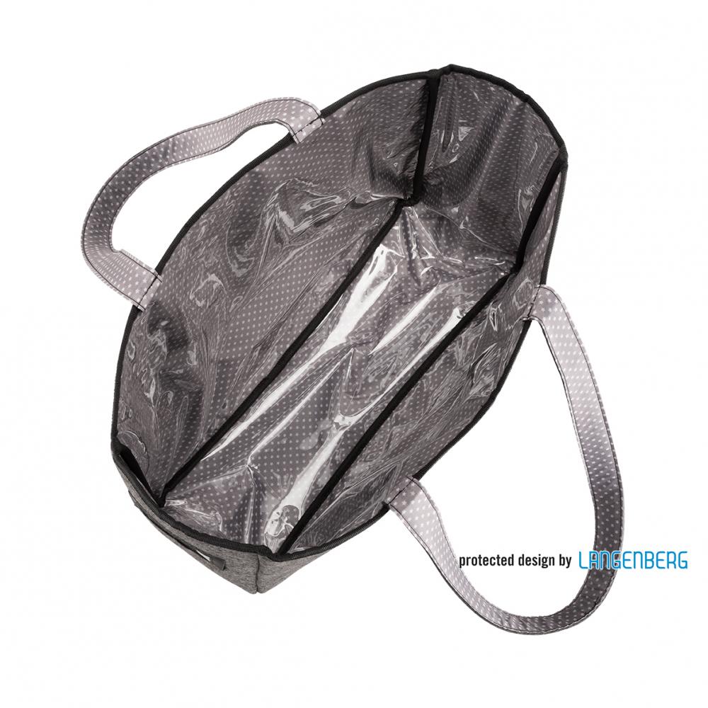 offenes großes Hauptfach, Reißverschlussvortasche, Innenbereich abwaschbar, seitlich mit Namensfach, Boden mit 4 PVC Füßen versehen, Volumen: 22l.