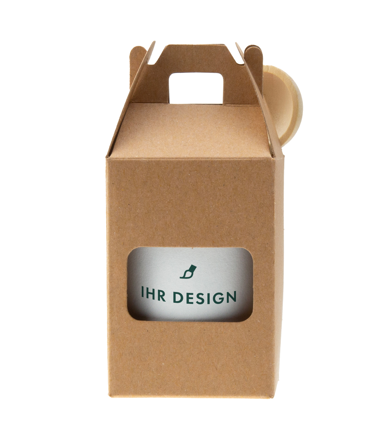 Karton: 4,5 x 4,5 x 10 cm, Glas: Ø 4,3 x 5,2 cm, Holzlöffel: ca. 6,8 x 2,4 cm