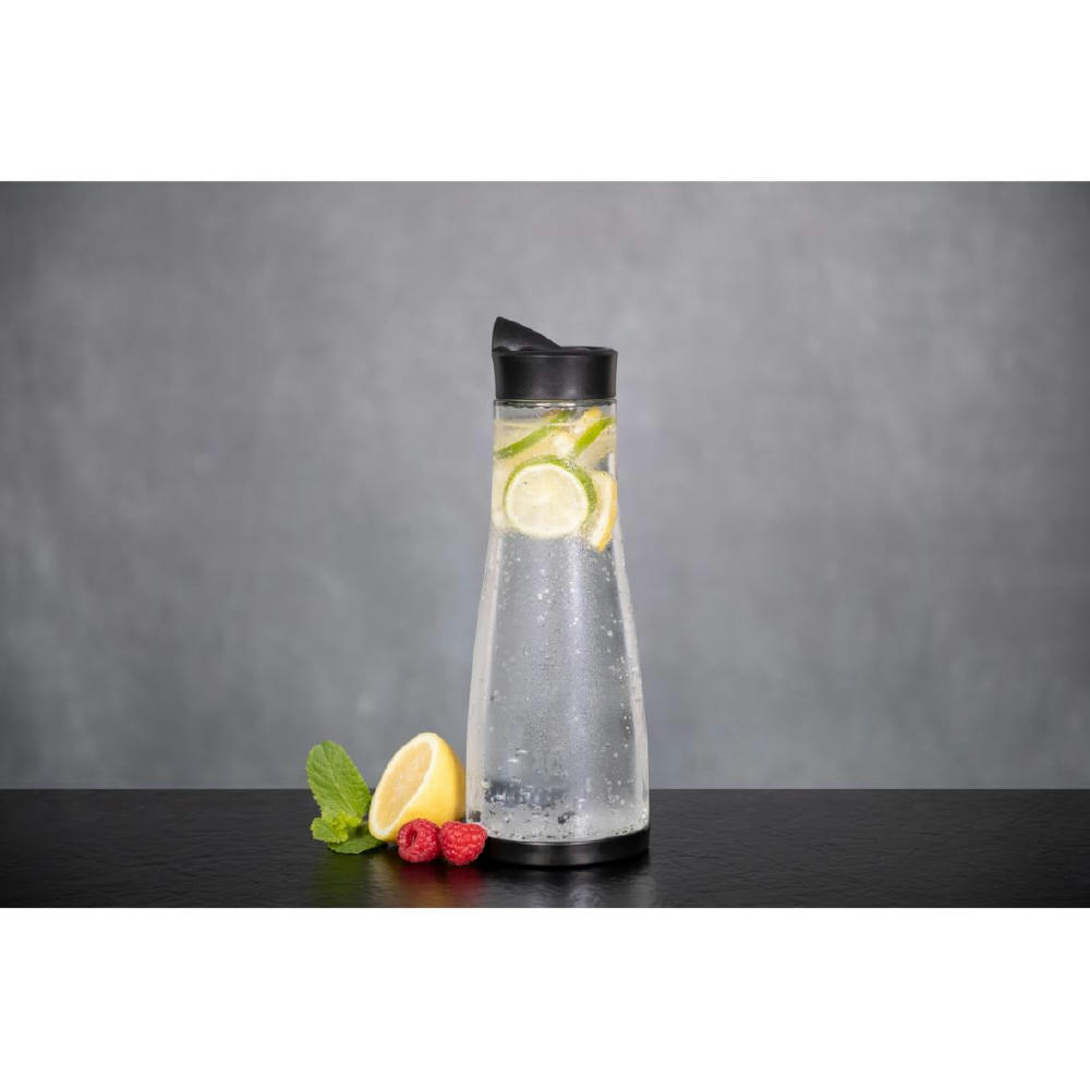 Glaskaraffe mit Ausgießer aus Kunststoff, welcher mittels Schraubverschluss sicher mit der Karaffe verbunden ist.