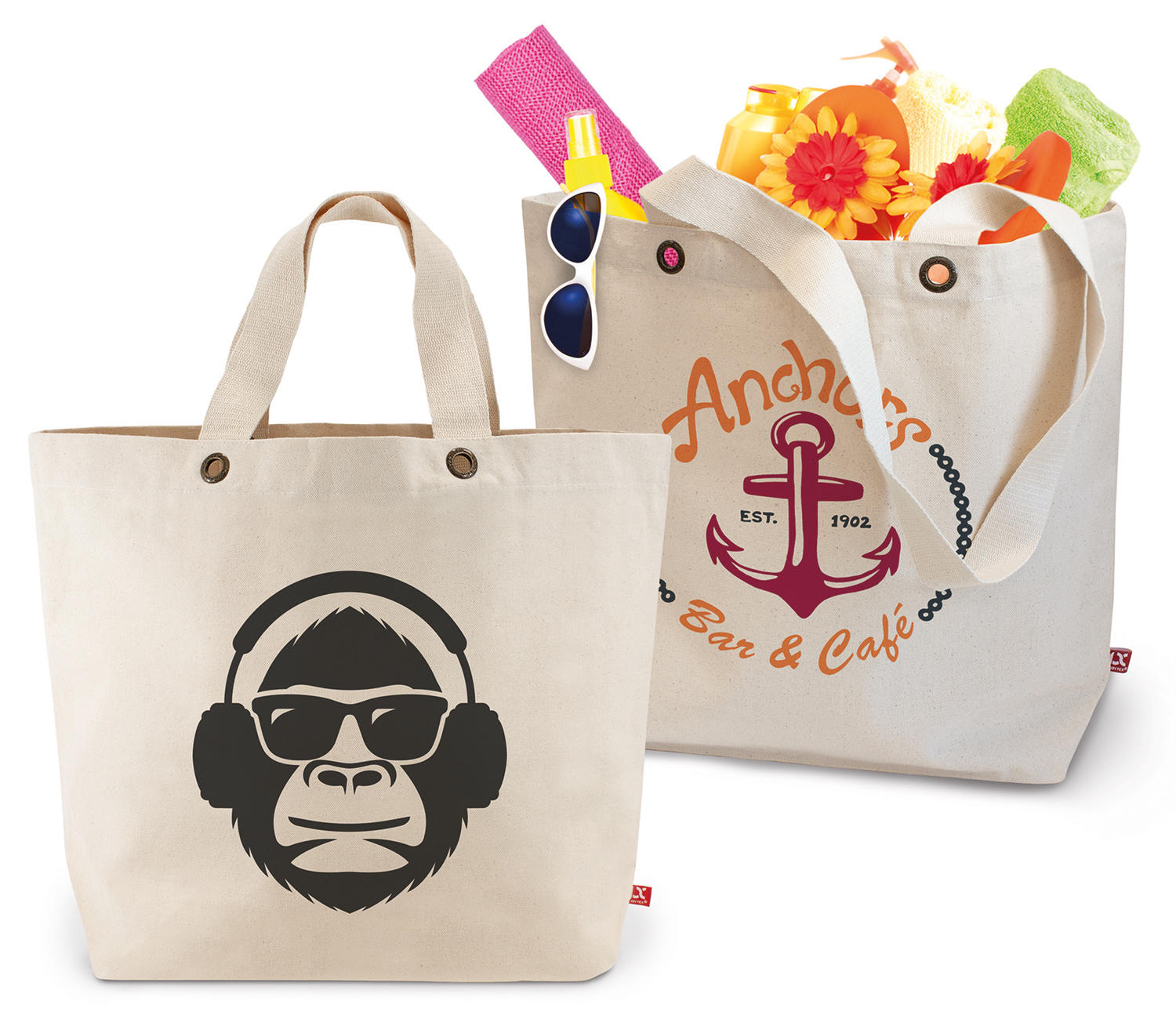Big-Shopper aus OEKO-TEX® zertifizierter Baumwolle in strapazierfähiger Canvas-Qualität mit kurzen, gewebten Henkeln und Bodenfalte. Gegen Aufpreis auch mit langen Henkeln erhältlich.
