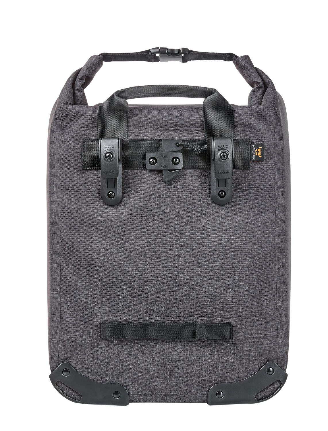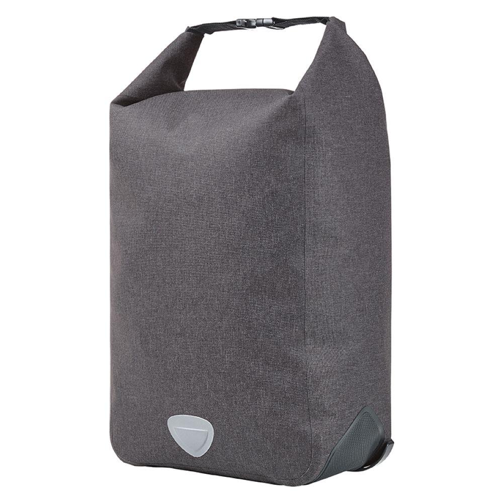 Urbane Fahrradtasche mit geräumigem Hauptfach; große Reißverschluss-Innentasche; Rolltop-Verschluss; geschweißte Nähte für zuverlässigen Schutz vor Regenwasser und Nässe; Boden- und Kantenschutz; individuell einstellbare Halterung zur Befestigung am Fahrrad-Gepäckträger mit Drehriegel zur Sicherung und Klettverschluss auf der unteren Taschenrückseite für zusätzliche Fixierung; dekorative Reflektorapplikation; Handgriff.