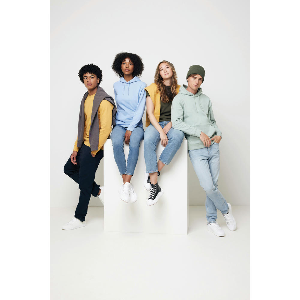 Unisex-Kapuzenpullover mit Classic-Fit Passform aus 100% Baumwolle, davon 50% recycelt und 50% Bio-Baumwolle, in 340gr/m². Der Pullover hat eine doppellagige Kapuze, lange Ärmel und 1x1-Ripp. Die Innenseite besteht aus weichem, gebürstetem Fleece für zusätzlichen Komfort. Die Verwendung von tatsächlich recycelten und biologischen Stoffen und die Angaben zur Umweltverträglichkeit werden durch den Einsatz der disruptiven AWARE™- und Blockchain-Technologie garantiert. Durch Scannen des QR-Codes erhalten Sie Zugang zu einem speziellen digitalen Pass des Produkts. 2% des Erlöses jedes verkauften Produkts werden an Water.org gespendet. Dieses Produkt ist nach OEKO-TEX® STANDARD 100, 2303045 Centexbel zertifiziert. Aufgrund der Natur von recycelten Garnen können Verunreinigungen und Farbabweichungen auftreten.