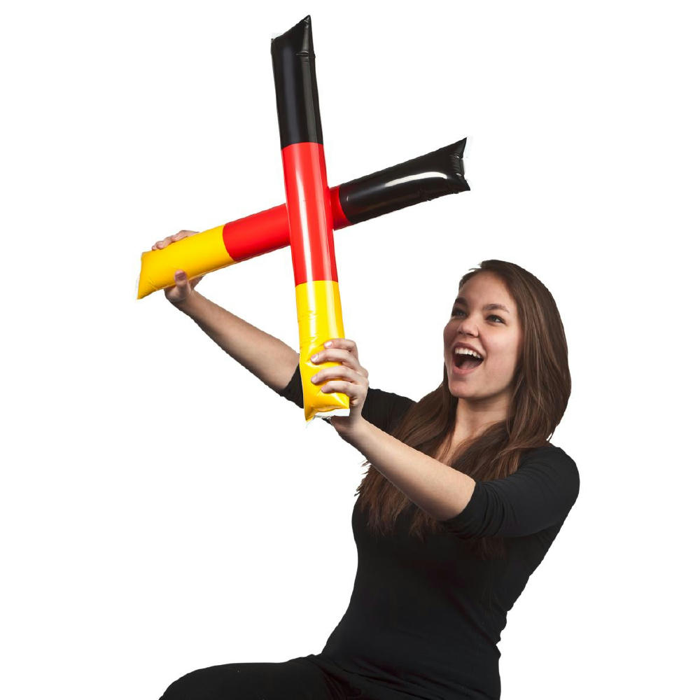 Zwei aufblasbare Schläuche mit selbstschließendem Ventil-Mechanismus gegen das Entweichen von Luft. Zum Aufblasen und Auslassen dient ein beigelegter Strohhalm.