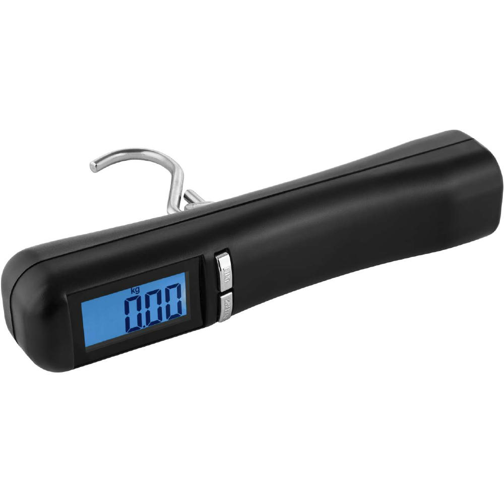 Digitale Kofferwaage mit blau hinterleuchtetem Display. Belastbarkeit bis 40 kg, Edelstahlhaken. Die kompakte Größe passt in jede Tasche. 2 AAA-Batterien inklusive. Elegante Craft-Paper-Box aus recyceltem Papier.