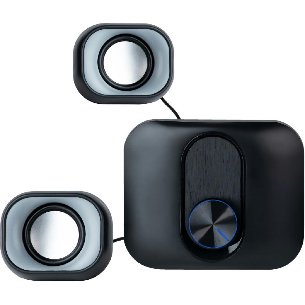 Set aus zentralem Bass- und zwei Satellitenlautsprechern (5W + 2 x 3W, passiv).