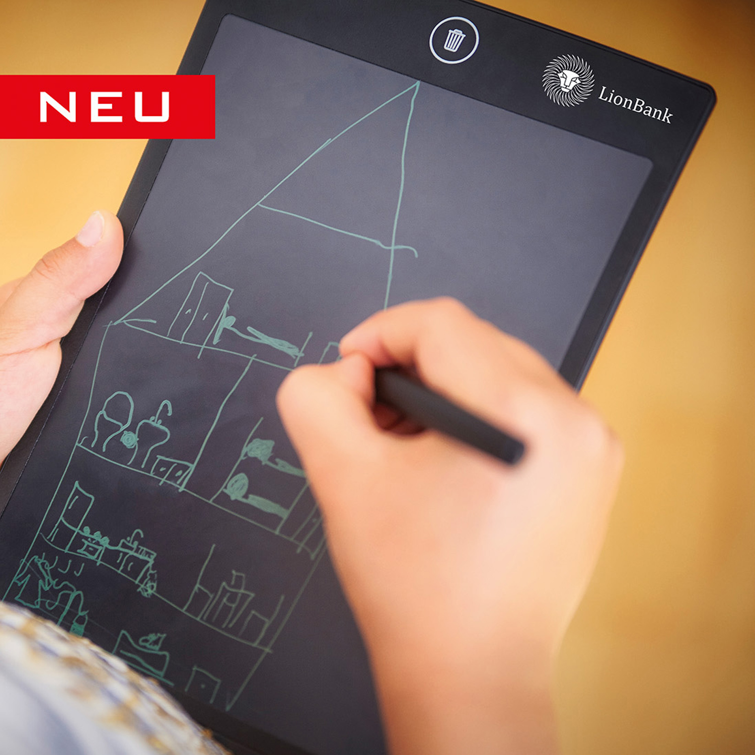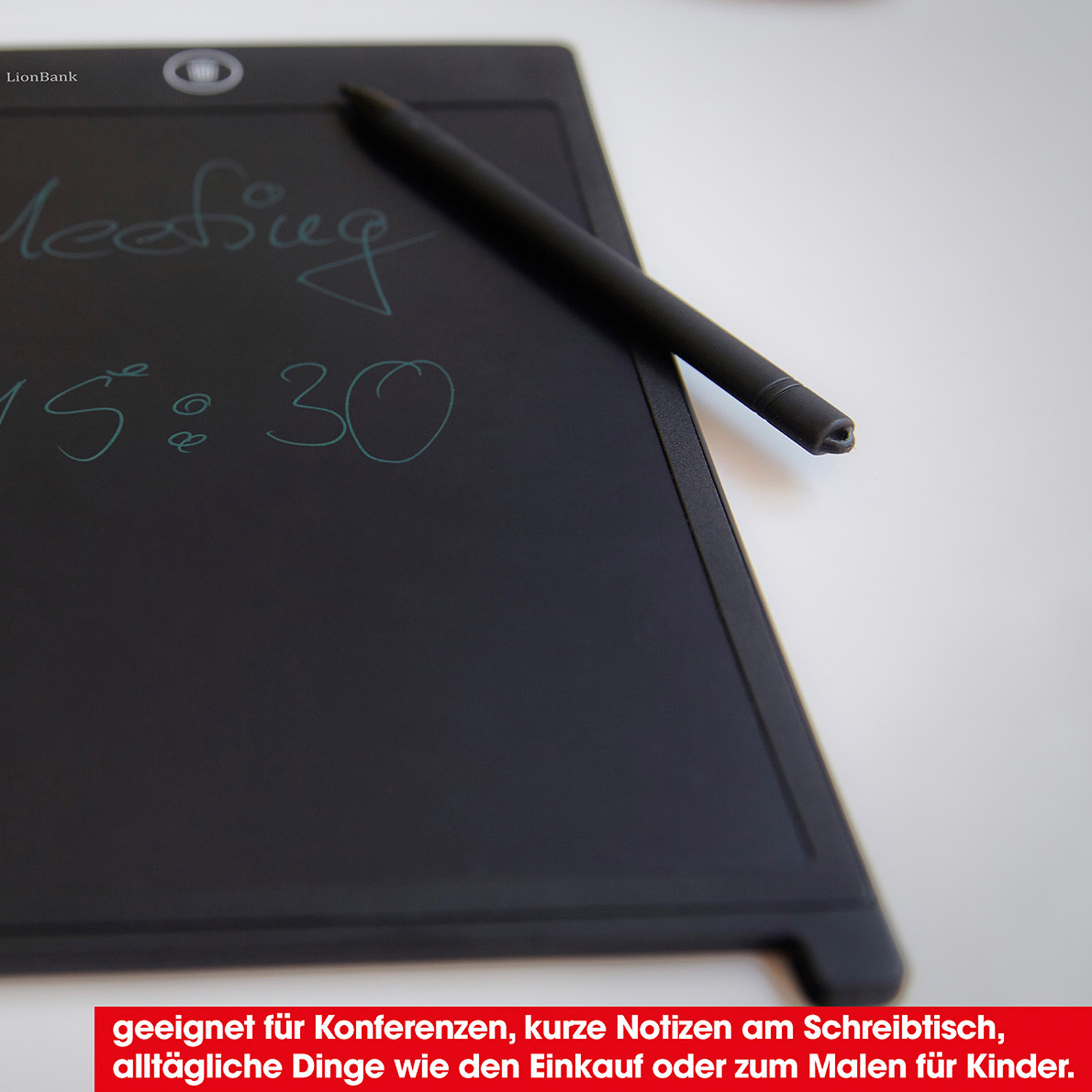 Gerät, die Strichstärke kann hierbei je nach Druck und Geschwindigkeit variieren. Geschriebenes oder Gezeichnetes lässt sich mittels Knopfdruck einfach löschen.