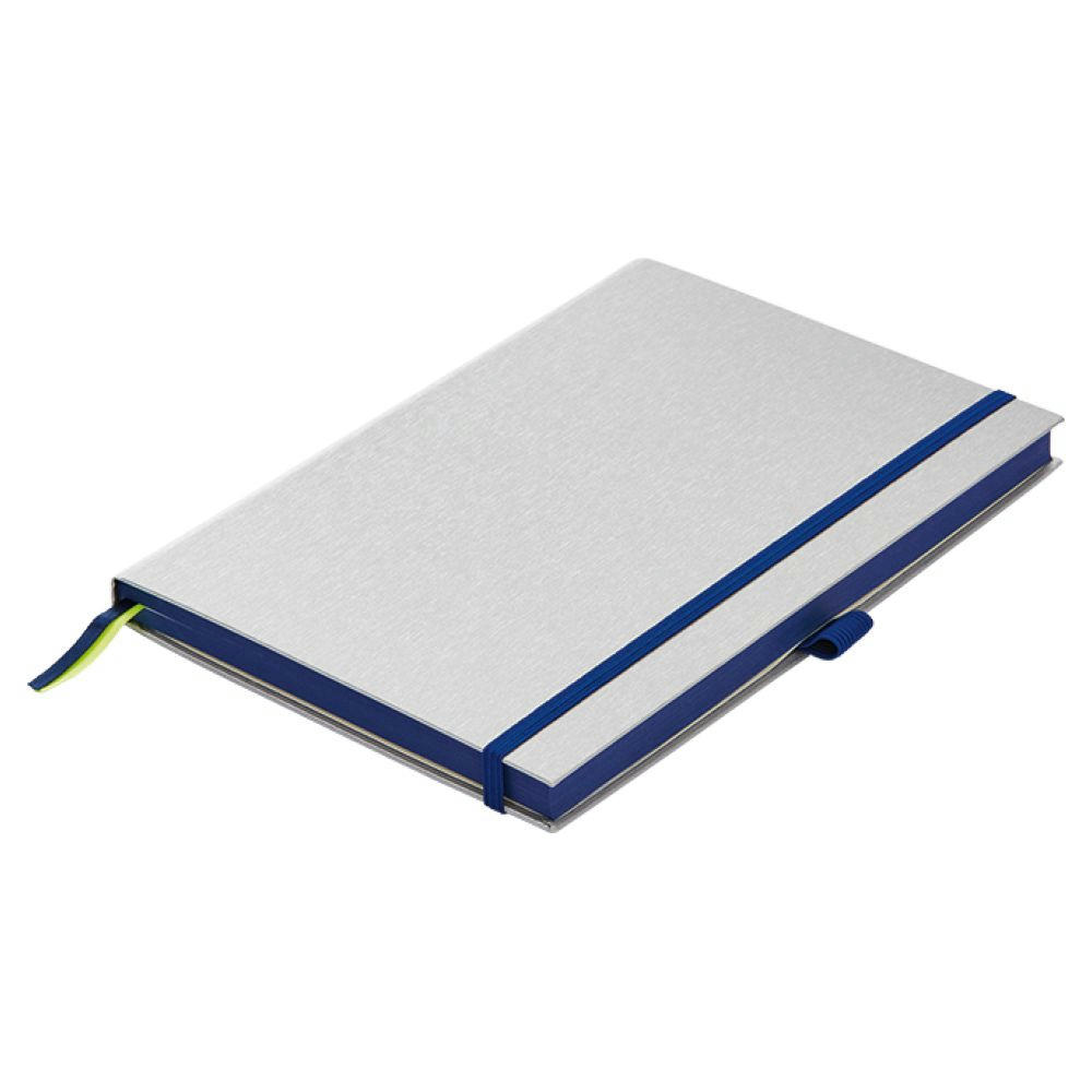 Überzeugt mit angenehmer Haptik und einem strukturierten, silberfarbenen Einband und dem charakteristischen Seitenschnitt in Kontrastfarbe. Die umfangreiche Ausstattung umfasst eine Schlaufe für Schreibgeräte und ein Verschlussband in Kontrastfarbe, zwei Lesezeichen und eine Falttasche für lose Notizen. Der Einband hat eine dezente LAMY-Logoprägung auf der Rückseite. Das Papier ist tintensicher und daher auch für Füllfederhalter geeignet. Die besondere Lamy-Lineatur vereint liniert und kariert. Hergestellt in Europa.
