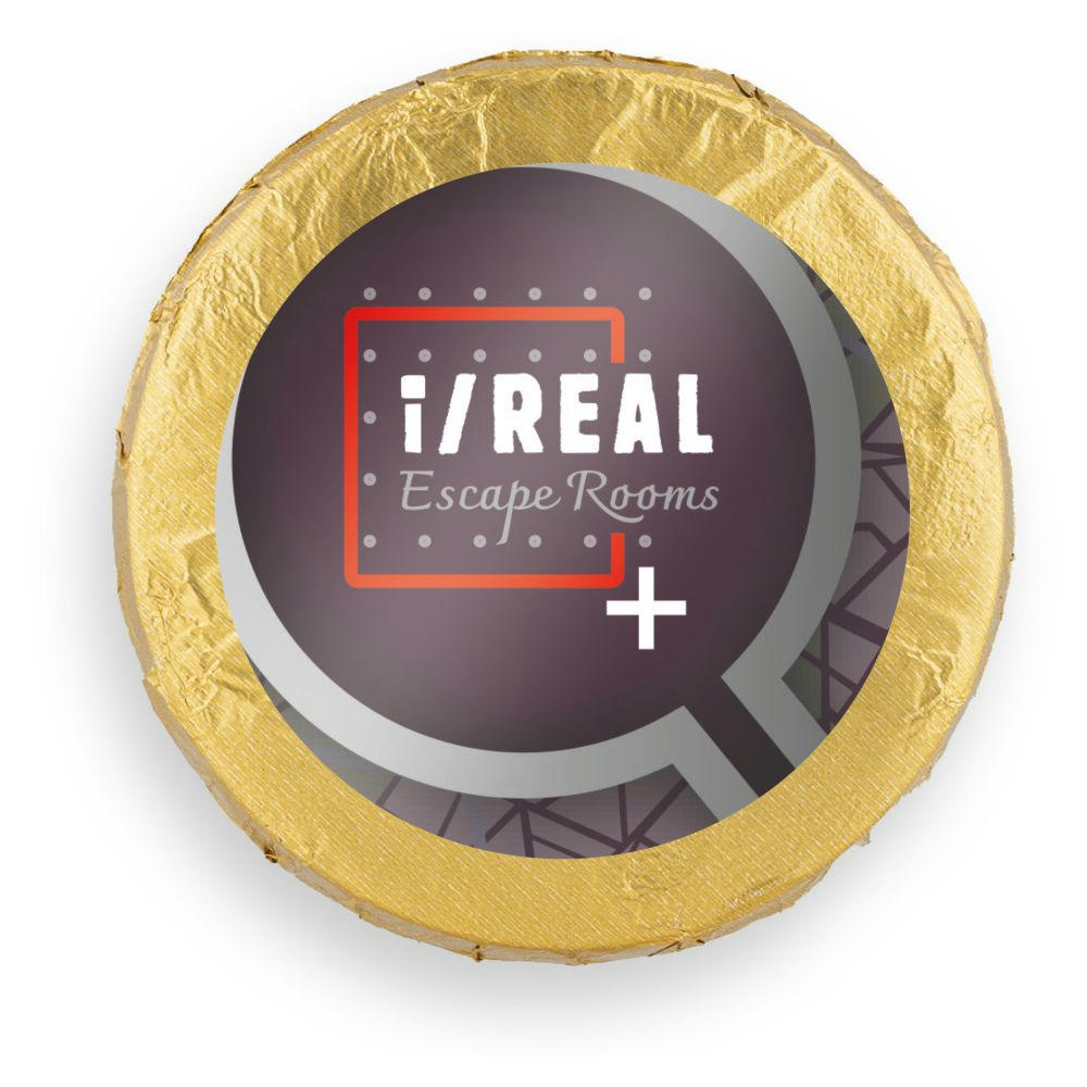 Hochwertige Schokoladen-Taler gefüllt mit zartschmelzendem Nougat und Haselnuss-Crisps, in goldenem Stanniolpapier. Haltbarkeit: ca. 6 Monate