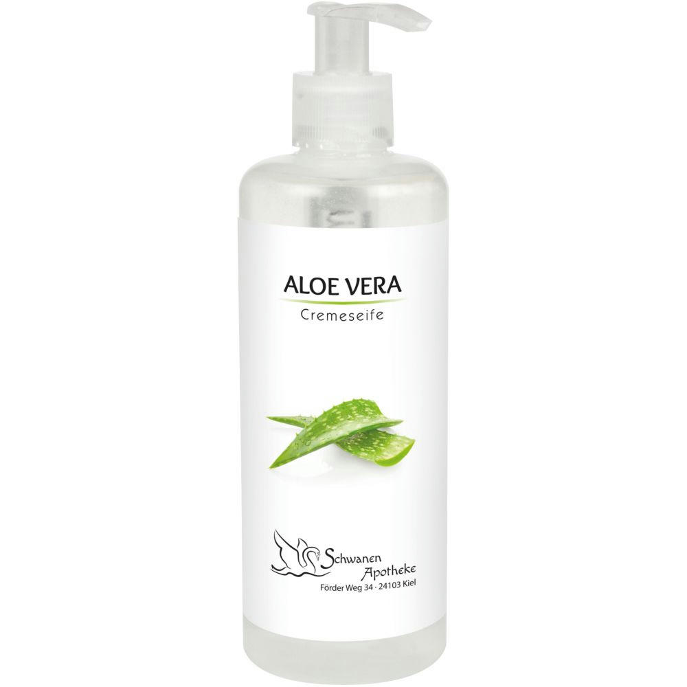 Transparenter Pumpspender gefüllt mit Cremeseife »Aloe Vera« mit milden, sehr hautverträglichen und feuchtigkeitsspenden Substanzen. Dezenter Unisex-Duft. Beinhaltet keine Mineralöle, keine Mikroplastikpartikel und ist vegan. Material: Kunststoff. Farbe: transparent. Maße: 18 x 5,6 cm.
