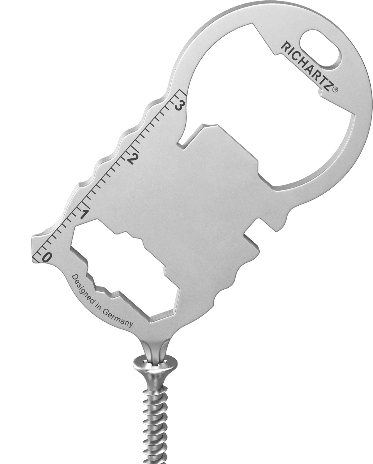 Kleines, kompaktes Multitool mit 13 Funktionen, aus hochwertigem, matt gestrahltem Edelstahl gefertigt. Passt an jeden Schlüsselbund. Inkl. Lasergravur und individuell gestalteter Verpackung.