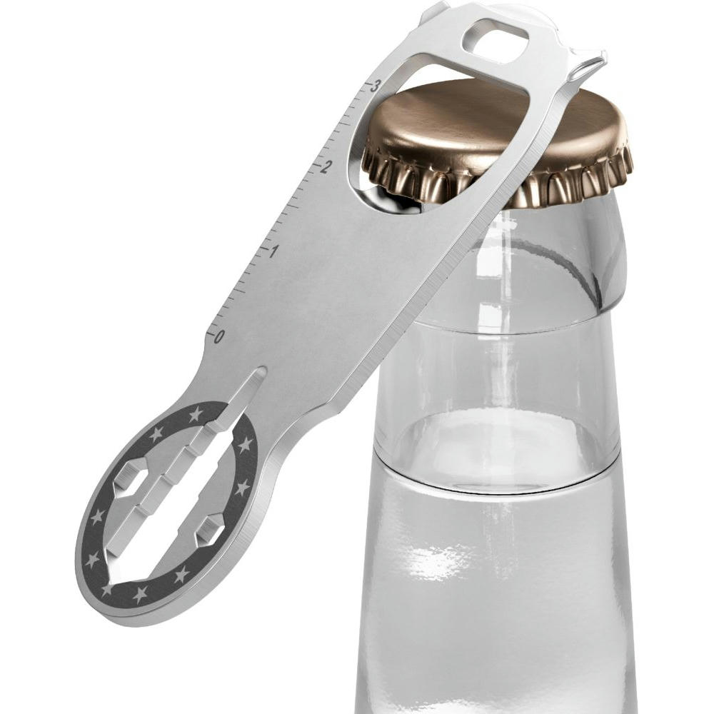 Das kompakte Multifunktionstool ist ein unentbehrlicher Begleiter und passt an jeden Schlüsselbund! 14 Funktionen: praktischer Einkaufswagenlöser, Kapselheber, zwei Schlitzschraubendreher, Kreuzschraubendreher, sechs Sechskantschlüssel, Zentimetermaß, Inchmaß, Nagelzieher.
