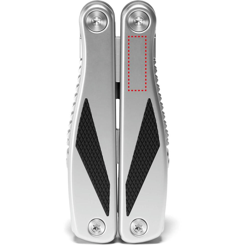 Die matt gestrahlten modernen Edelstahlgriffe mit schwarzen Kunststoffeinlagen geben sicheren Halt bei jeder Arbeit. Die kräftige, gegossene Zange mit Drahtschneider, die große Klinge, die Metallfeile und viele weitere Funktionen, überzeugen im täglichen Gebrauch. Für ein besonders sicheres Arbeiten lassen sich alle ausklappbaren Funktionsteile arretieren. Mit schwarzer Gürteltasche. Ab 100 St. individuelle Gestaltung der Verpackung und Lasergravur auf Produkt gegen Aufpreis möglich.