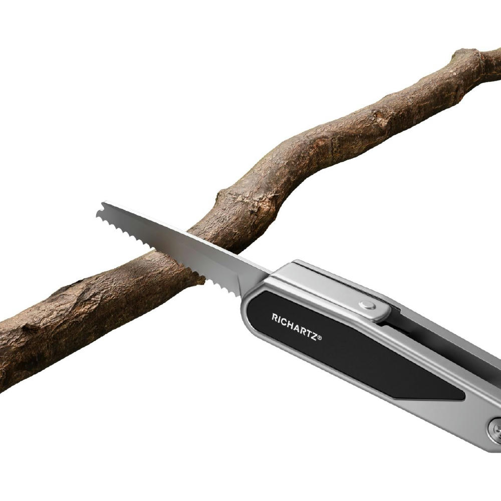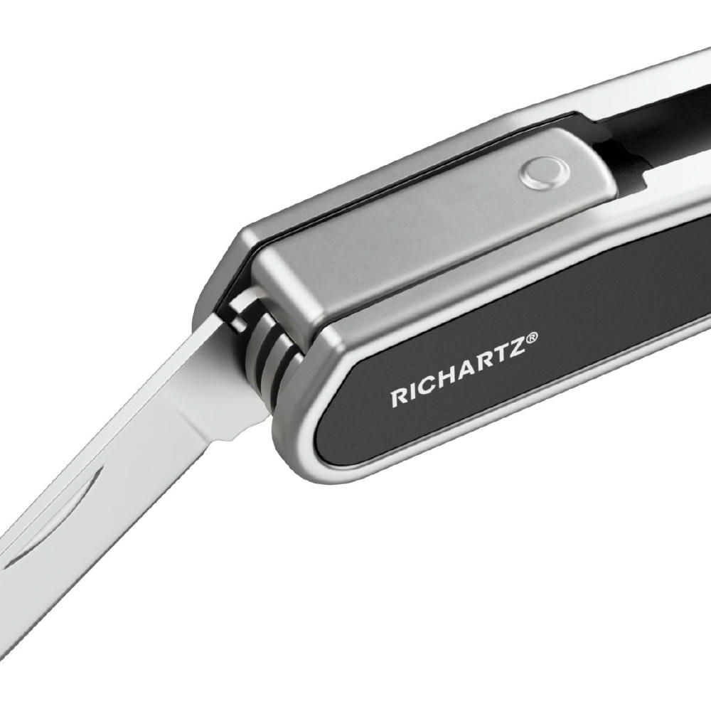 PROKNIFE 15 ist die kompakte moderne Neuinterpretation des klassischen Taschenmessers mit 15 Funktionen: Klinge, Säge, Kapselheber, Kreutzschlitzschraubendreher, Schlitzschraubendreher, Fahrradspeichenschlüssel, Sechskantschlüssel (5), Vielzahnschlüssel (2), Kabelabzieher, Nagelzieher.