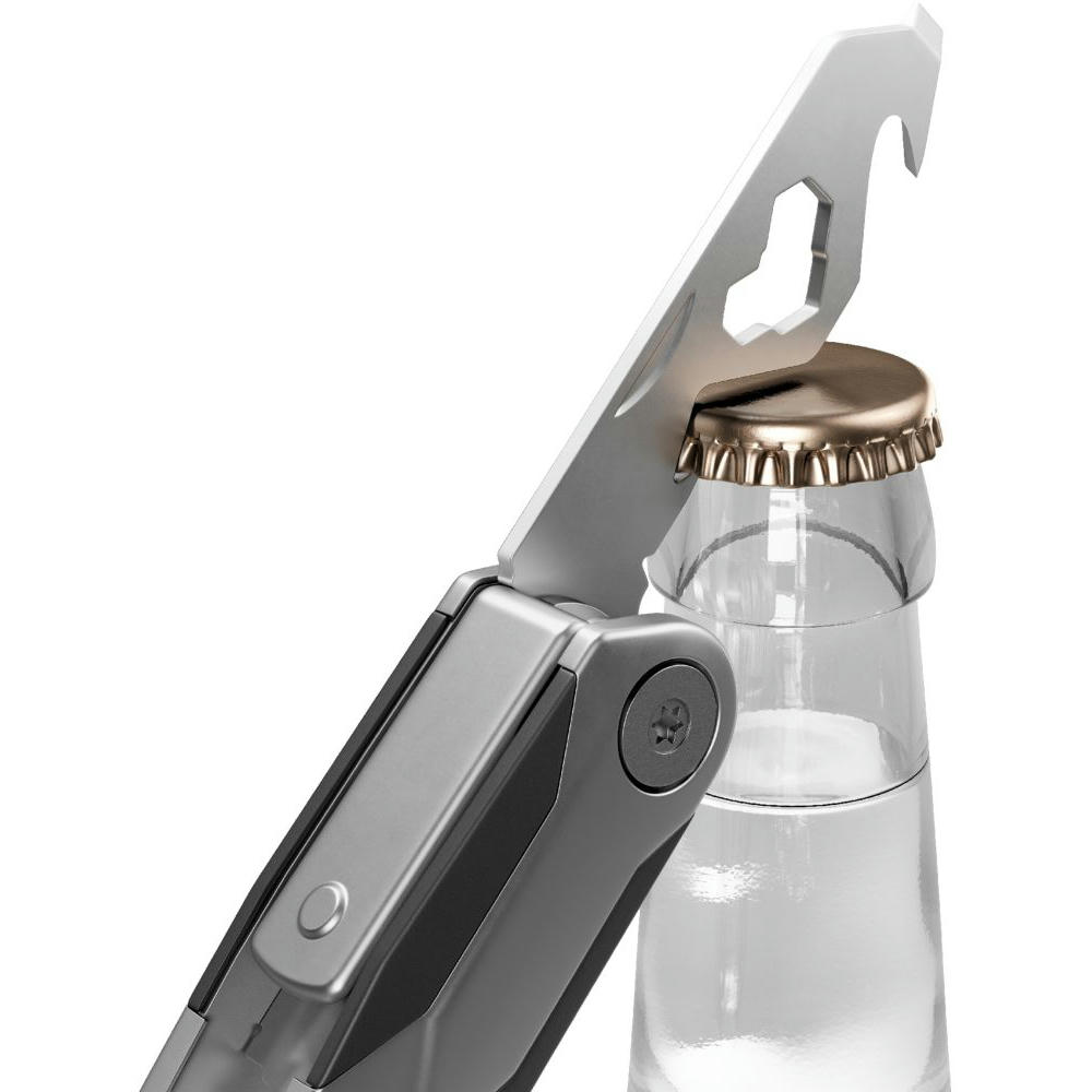 Kompaktes Taschenmesser mit 10 Funktionen: Klinge, Säge, Kapselheber, Schere, Schlitzschraubendreher, Sechskantschlüssel (3), Brief- und Paketöffner, Profiltiefenmesser.