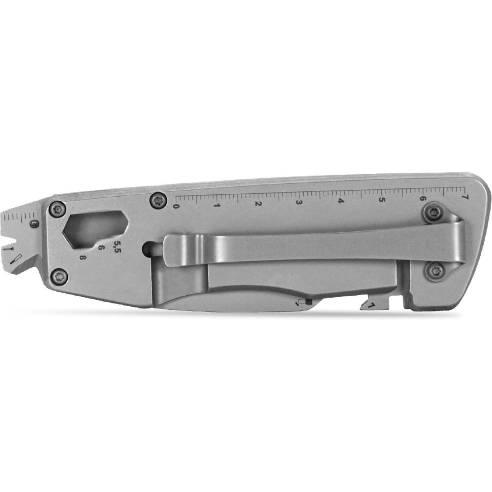 WORKPRO 11+ ist das robuste Arbeitsmesser für anspruchsvolle Anwender. Die Klinge ist per Liner Lock arretierbar – für sicheres uns präzises Arbeiten. Funktionen: 1. Klinge, 2. Stemmeisen, 3. Kapselheber, 4. Schlitzschraubendreher, 5. Nagelzieher, 6. Sechskantschlüssel (4), 7. Zentimetermaß, 8. Reifenprofilmesser.