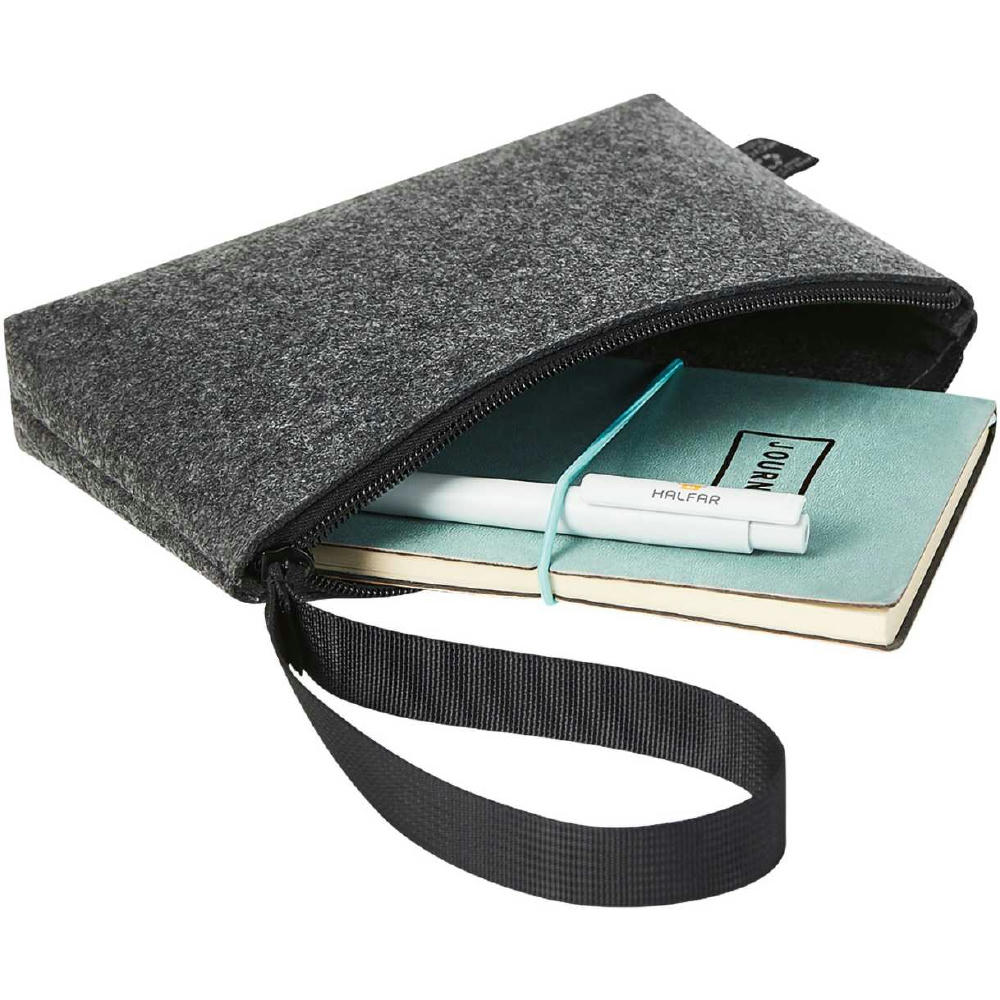 kleines, feines Täschchen aus recyceltem Filzmaterial; Reißverschluss; praktische Handschlaufe
