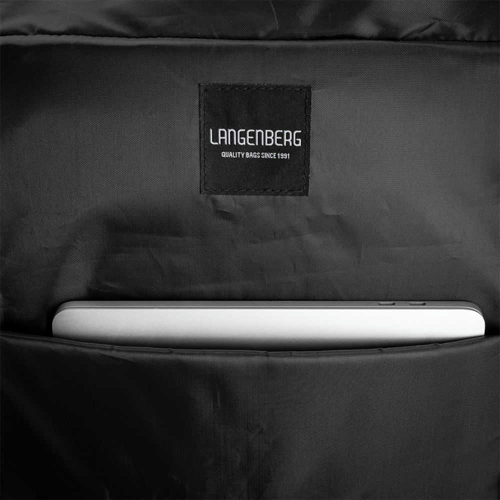 großes Hauptfach mit Reißverschluss, Laptopfach bis zu 16”, Reißverschlussinnentasche, gepolsterter Boden, im Rückpolster rechts und links eingearbeitete Geheimfächer, verstellbare, gepolsterte Schultergurte, verstellbares Verschlussband mit Metall-Clip.