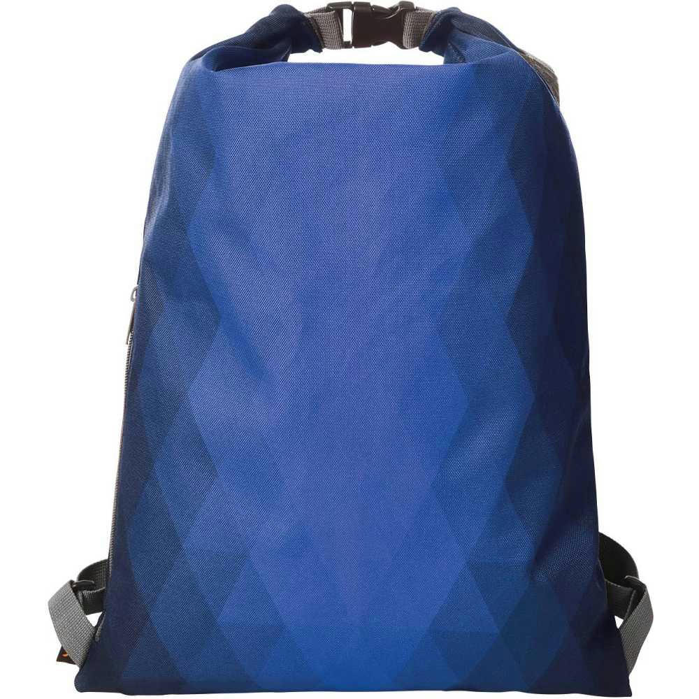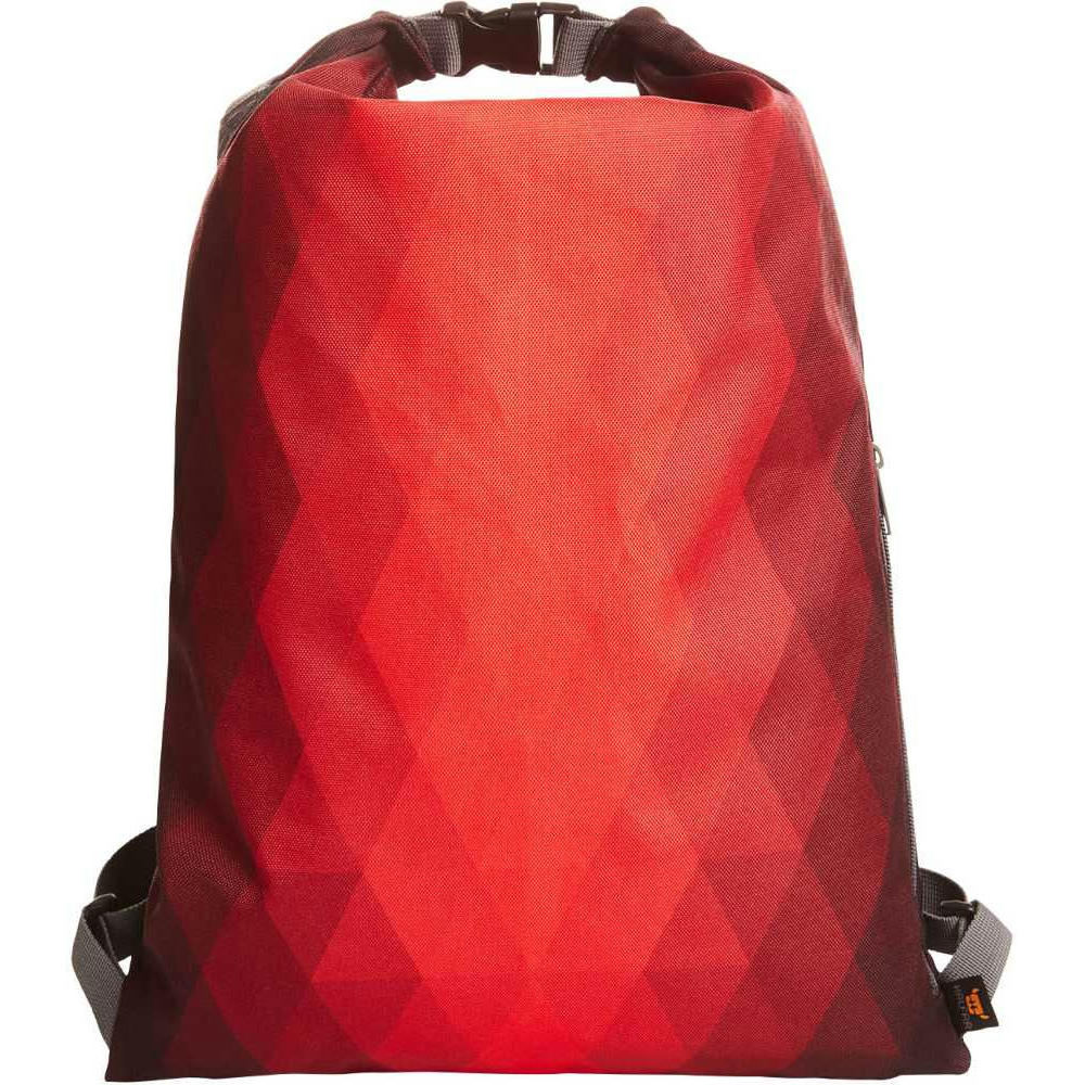 leichter, innovativer Rucksack mit Rauten-Dekor; beidseitig tragbar; Reißverschluss-Hauptfach mit zusätzlicher Wickelfunktion; seitliche Reißverschluss-Tasche; gewebte, längenverstellbare Schultergurte