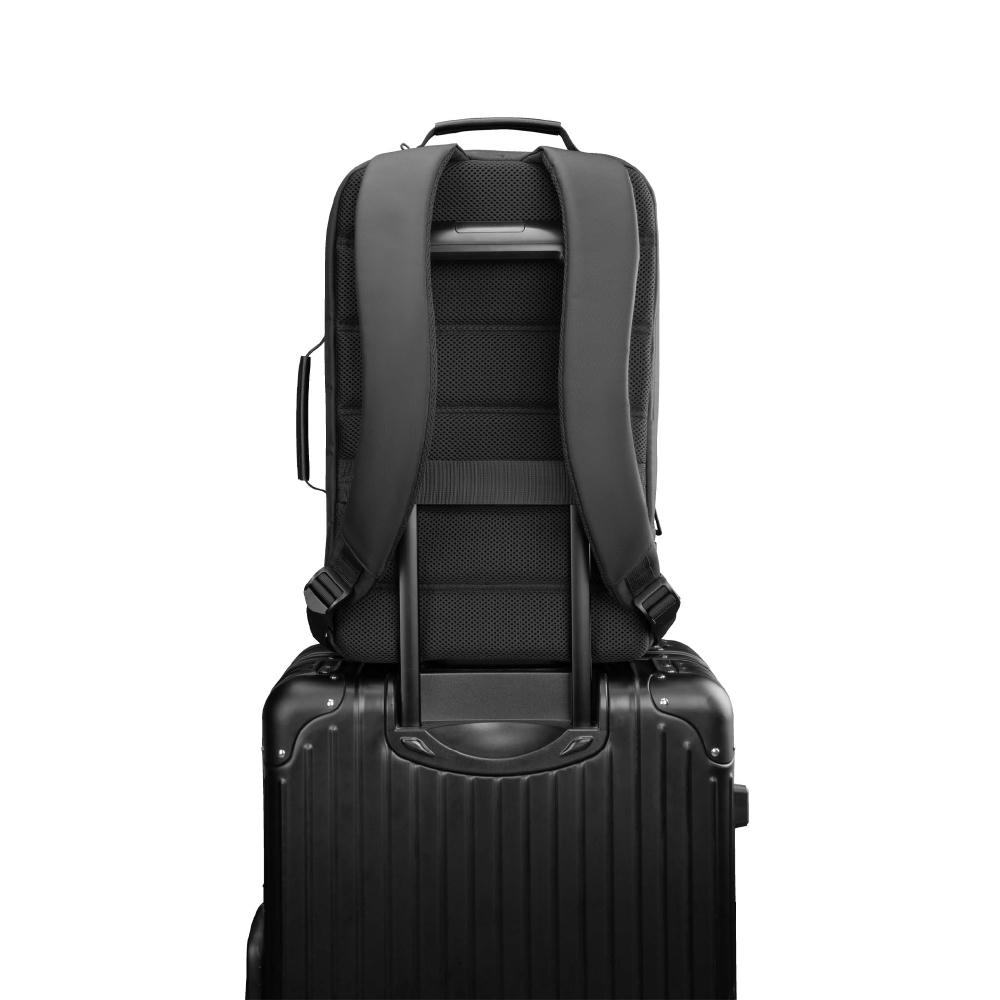 MagPack "business" – Ihr stilvoller Begleiter für den Alltag Erleben Sie die perfekte Kombination aus Eleganz und Funktionalität mit dem MagPack "business". Dieser hochwertige Rucksack wurde speziell für den modernen Business-Alltag entwickelt und bietet Ihnen nicht nur außergewöhnlichen Komfort, sondern auch ein anspruchsvolles Design. Durch die exklusive Veredelung mit ihrem individuellen Logo wird der MagPack "business" zum stilvollen Statement für professionelle Auftritte. Produktdetails: Material: Robustes, wasserabweisendes Material mit Lederakzenten. Design: Elegantes und minimalistisches Design mit hochwertiger Logo-Veredelung. Fächer: Große Haupttasche mit Stifte- und Smartphone Fach, Mesh-Netz und Tabletfach. Weitere Tasche mit gepolstertem Laptop- und Tabletfach sowie ein zusätzliches Frontfach mit Reißverschluss für schnellen Zugriff auf wichtige Utensilien. Komfort: Ergonomische, gepolsterte Schultergurte und ein verstellbarer Brustgurt sorgen für angenehmen Tragekomfort. Auf der Rückseite des Rucksacks befindet sich ein Gepäckriemen, um den Rucksack am Griff des Koffers zu befestigen. Verwendung: Ideal für den täglichen Berufsweg, Geschäftsreisen und als stilvolles Accessoire für elegante Anlässe. Durch den seitlichen Tragegriff kann der Rucksack auch als Tragetasche verwendet werden. Besonderheiten: Hochwertige Reißverschlüsse und eine versteckte Tasche auf der Rückseite für Wertgegenstände. Durch einen externen USB-Anschluss und ein innen liegendes Kabel lässt sich problemlos eine Powerbank mit einem Smartphone verbinden. Der MagPack "business" vereint Funktionalität mit einem edlen Design, welches durch die prägnante Logo-Veredelung unterstrichen wird. Der Rucksack ist die ideale Wahl für Berufspendler, Geschäftsreisende und alle, die Wert auf ein professionelles und zugleich modernes Auftreten legen.