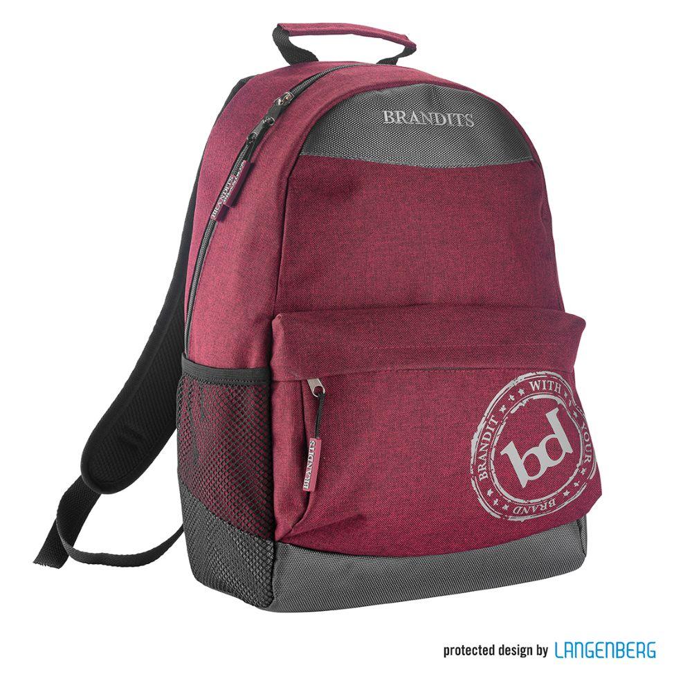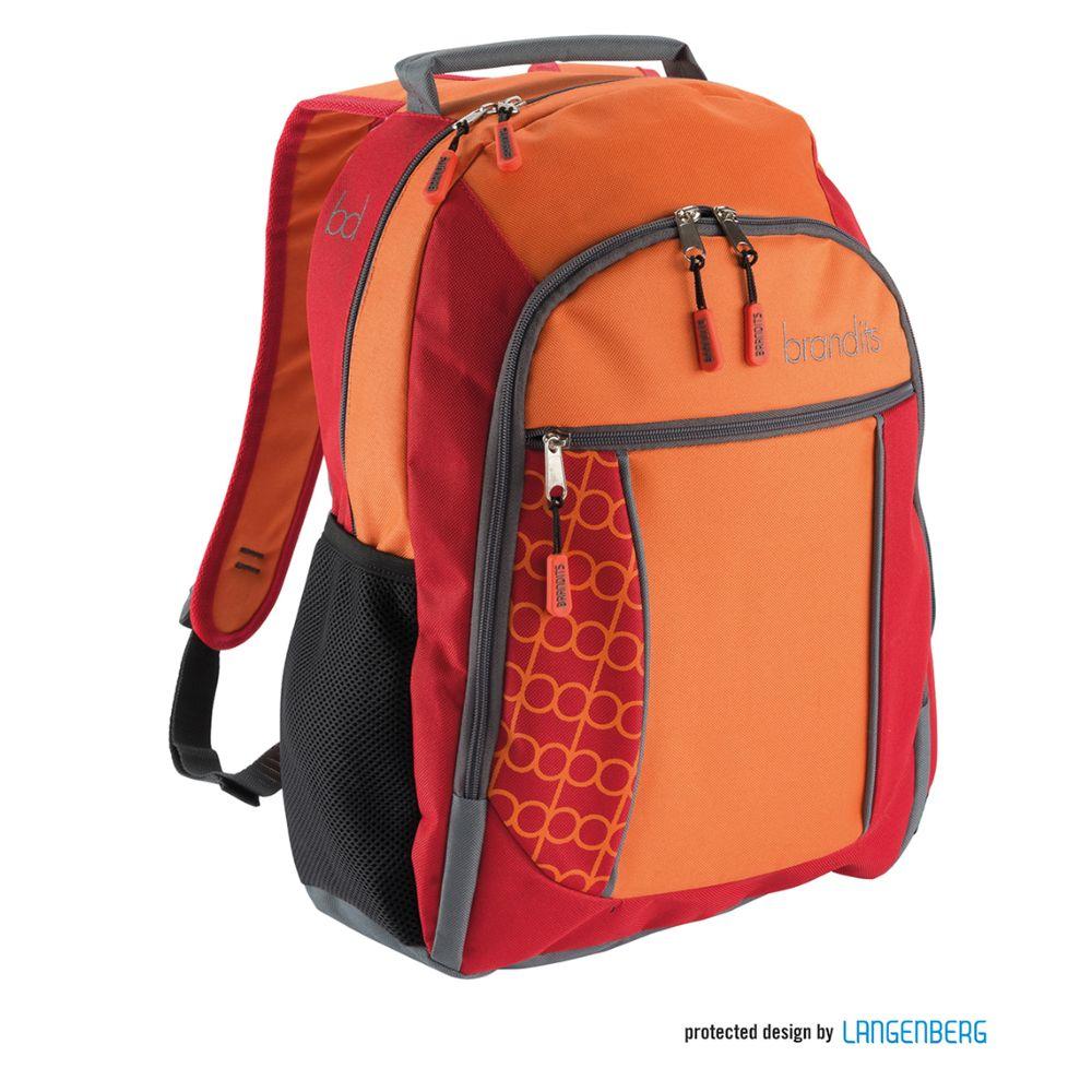 Ausstattung: 2-Wege-Reißverschlusshauptfach mit zusätzlichem Klickverschluss gepolstertes Einsteckfach innen Reißverschlussvortasche offenes Netzfach auf beiden Seiten gepolstertes Rückenteil verstellbare gepolsterte Schultergurte Tragegriff Maximale An