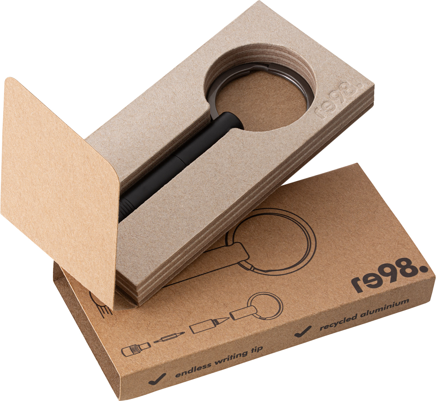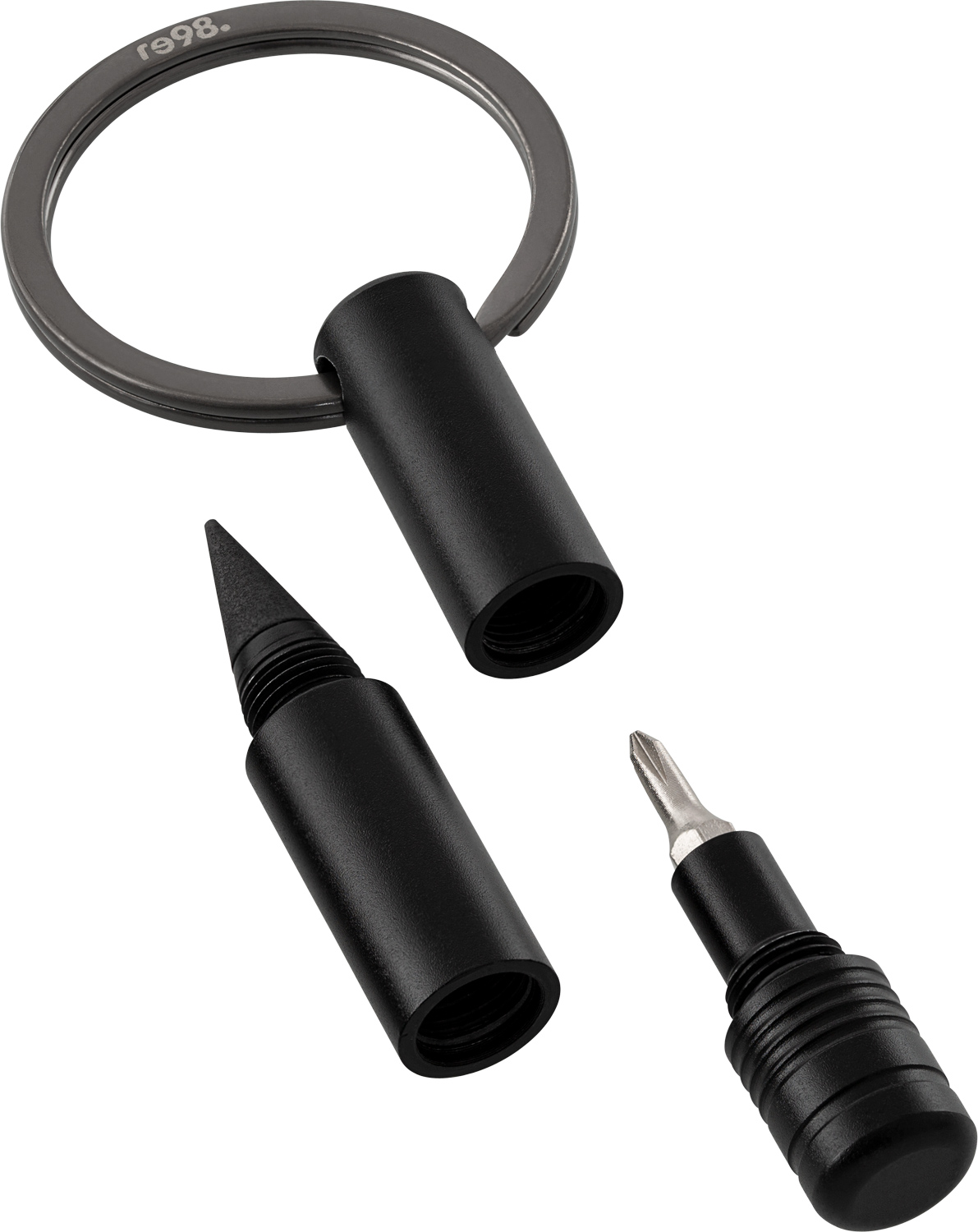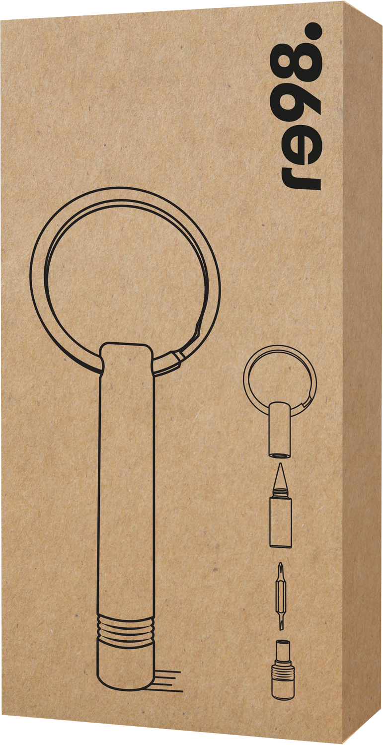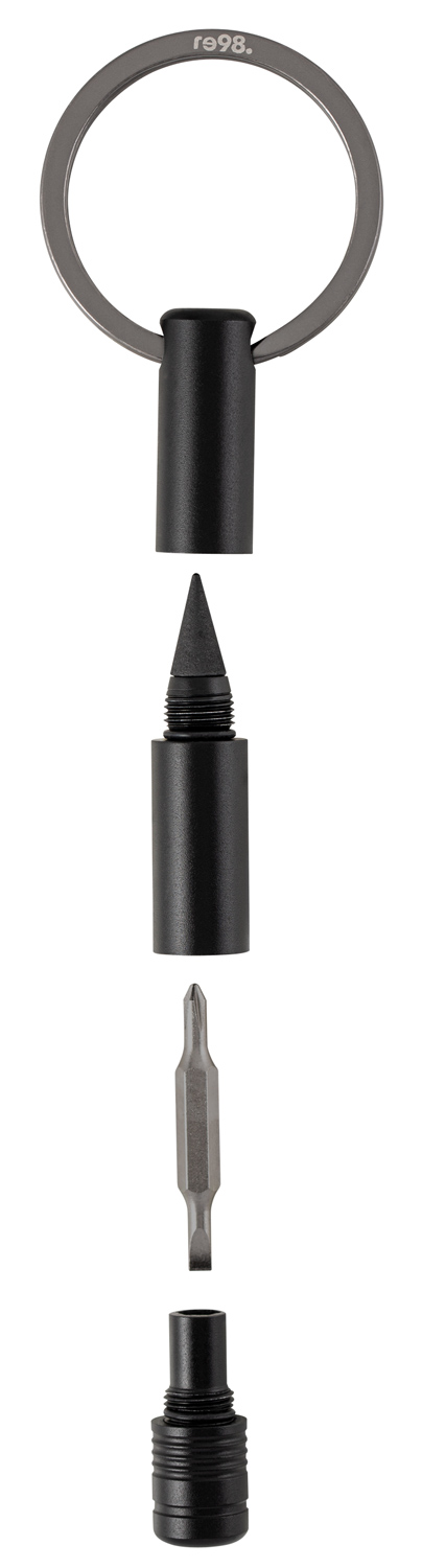 Ausgestattet mit einem magnetischen Bit und einer radierbaren Endlos-Schreibspitze. Der Bit ist aus besonders hartem Stahl mit einer Rockwell Härte von 55 bis 60 HRC. Sowohl ein Schlitz- als auch ein Kreuzschlitzaufsatz stehen zur Verfügung. Hergestellt aus recyceltem Aluminium, liegt der schwarz eloxierte Schlüsselanhänger leicht in der Hand. Veredelbar mit Lasergravur. Inkl. Geschenkverpackung.