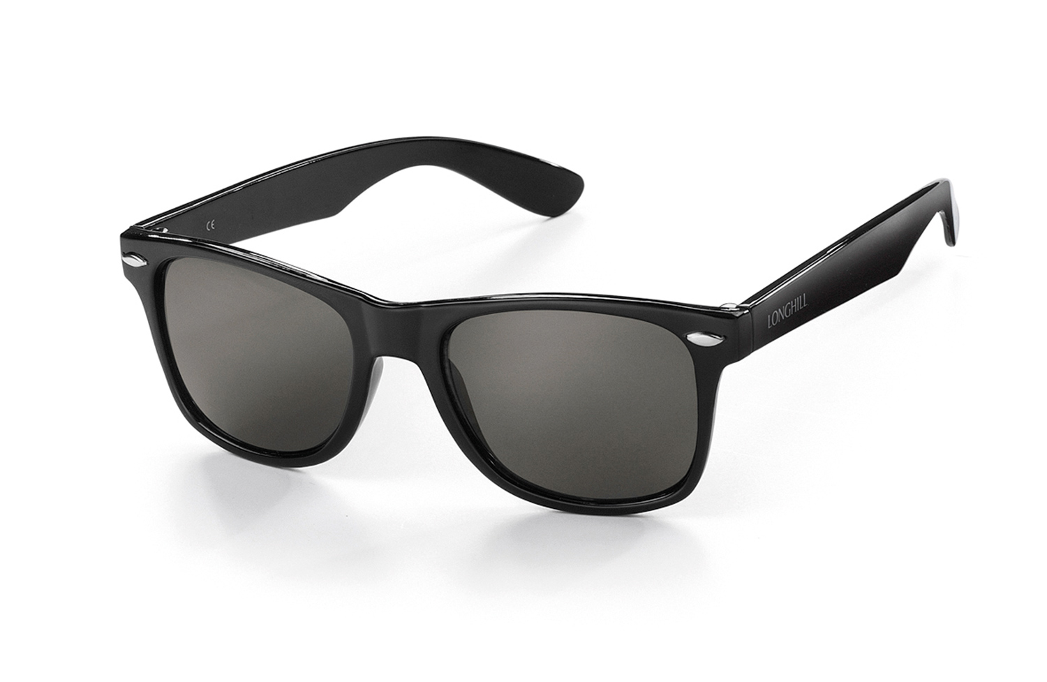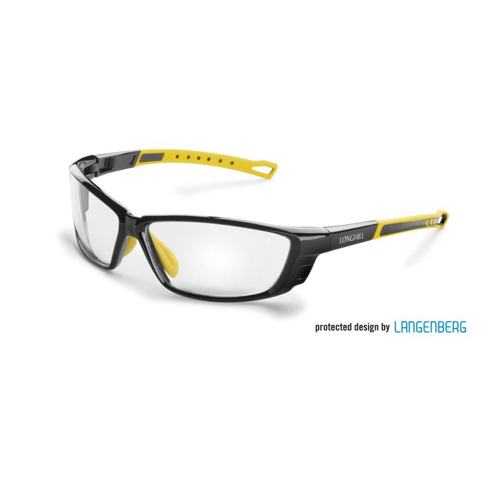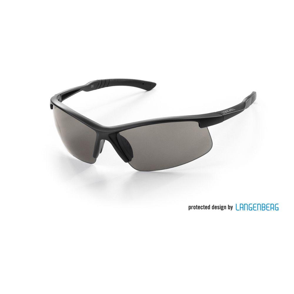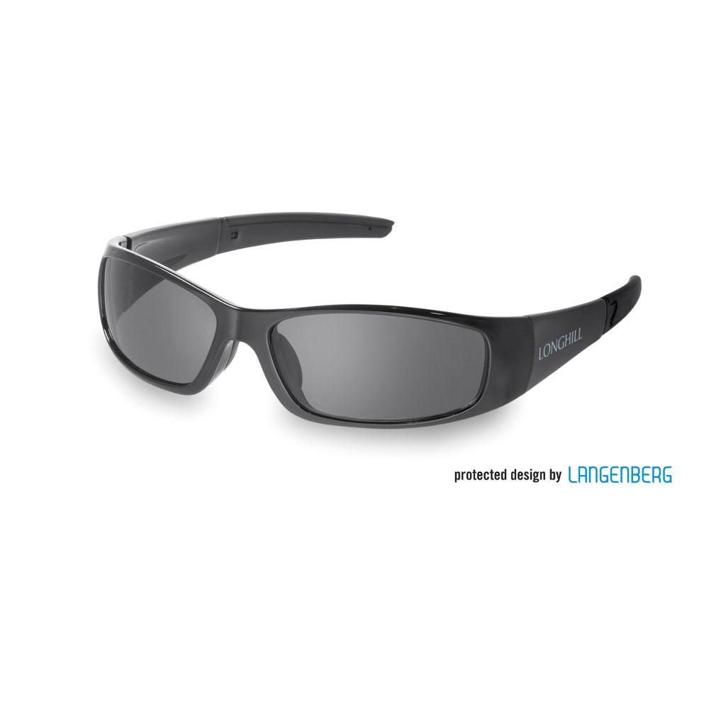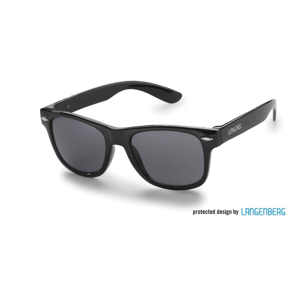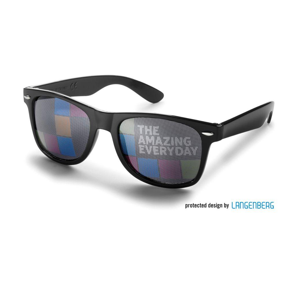 Ausstattung: Kunststoffgläser aus Acryl, schwarz, (andere Farben möglich ab 2400 Brillen), 100 % UV 400 Protection, Bügel mit Gummi (schwarz), Polycarbonatgläser gegen Aufpreis möglich, , inkl. 1-c Druck auf einem Bügel