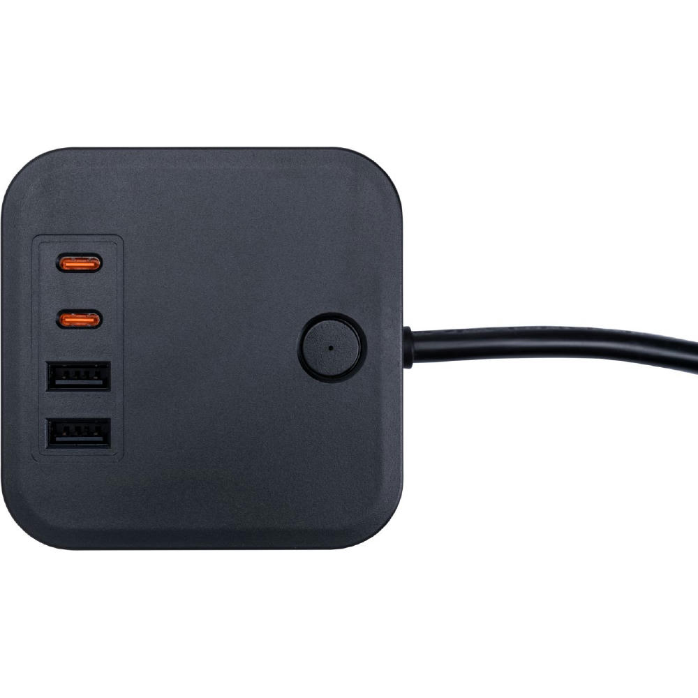 Steckdosenwürfel mit Ladebuchsen - für mobile Endgeräte mit bis zu 35W (PD). Steckdosenbelastung: 3860W (max.), Länge des Anschlusskabels: 1,5 m.