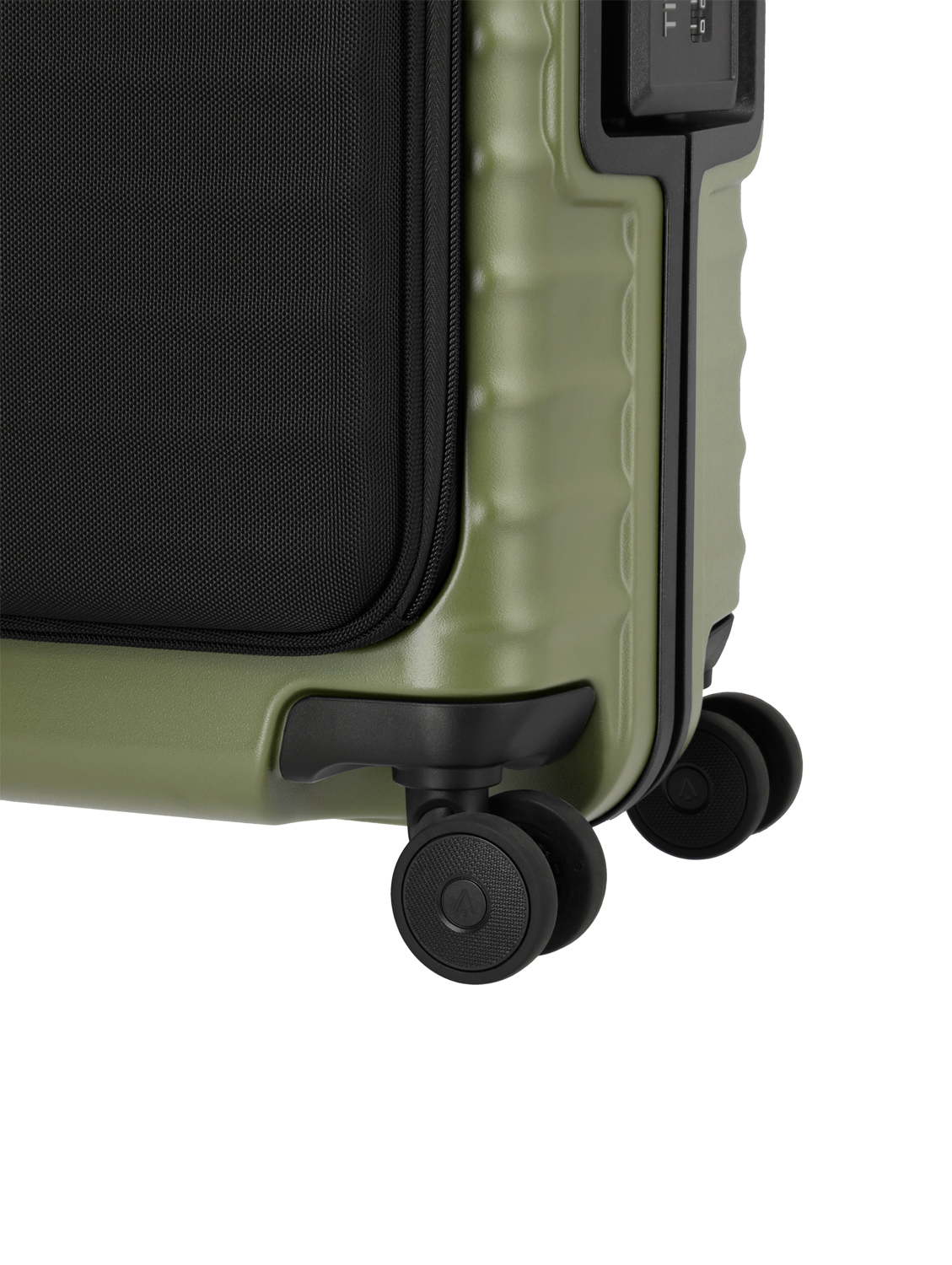 Maximale Stabilität bei höchstem Nutzungskomfort. Speziell entwickelte, besonders matte Oberflächenstruktur für maximale Kratzresistenz. 100 % Polycarbonat, zweifach verstärkte Schutzecken, für noch mehr Stabilität. Rahmenkonstruktion mit großen TSA-Schlössern für größtmögliche Sicherheit und Stabilität. Nur zwei Schlösser bei M+ und L, Mono-Lock bei S20 und S23. Innenfutter aus recyceltem Polyester mit hochwertiger Jacquard-Webung. Intelligente Innenaufteilung mit bis zu drei zusätzlichen Fächern. Herausnehmbare Packgurte in praktischer Y-Shape. Produktspezifische Seriennummer. Ergonomisch geformte Handgriffe. Große, überdurchschnittlich leise Doppelrollen. Made in Germany.