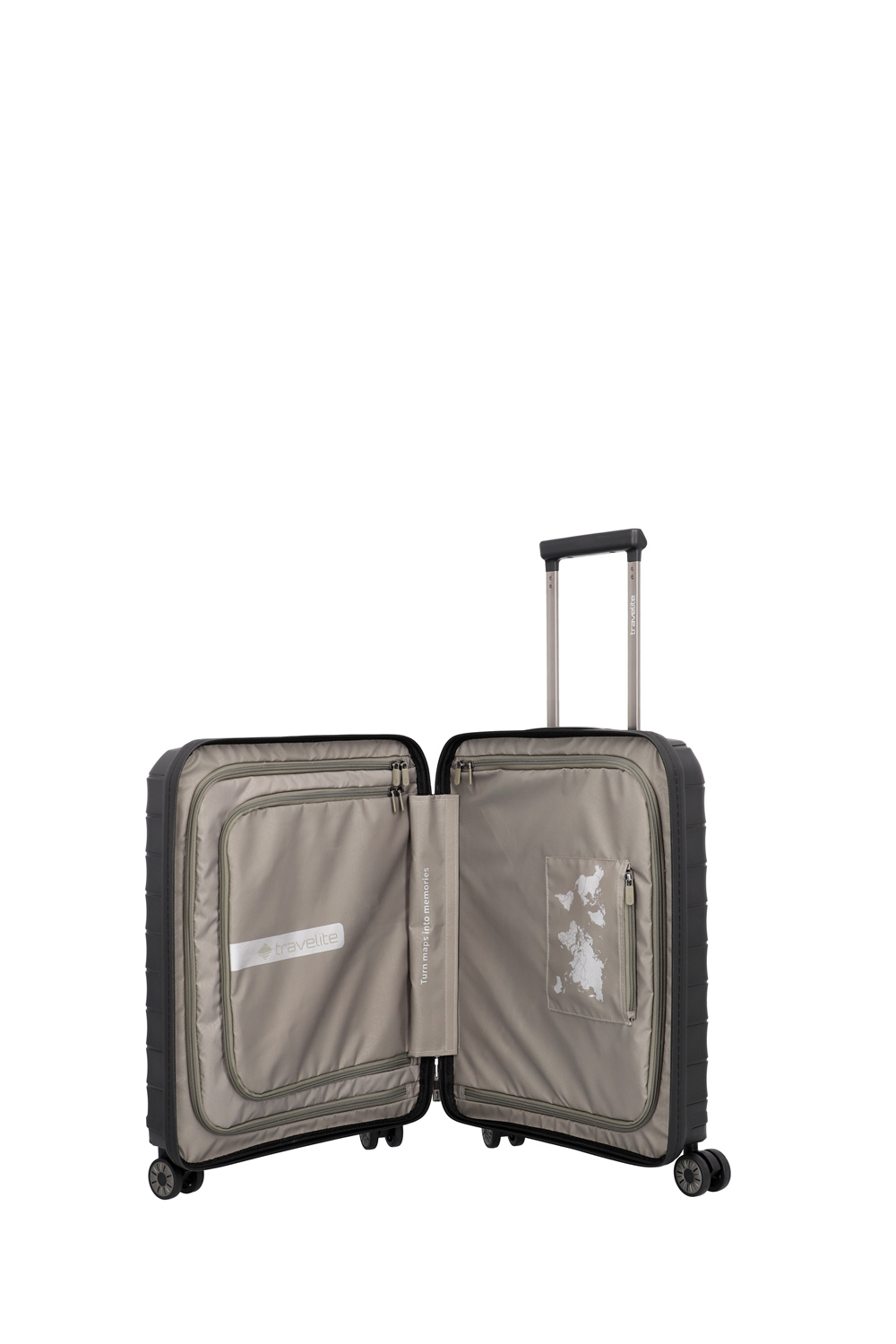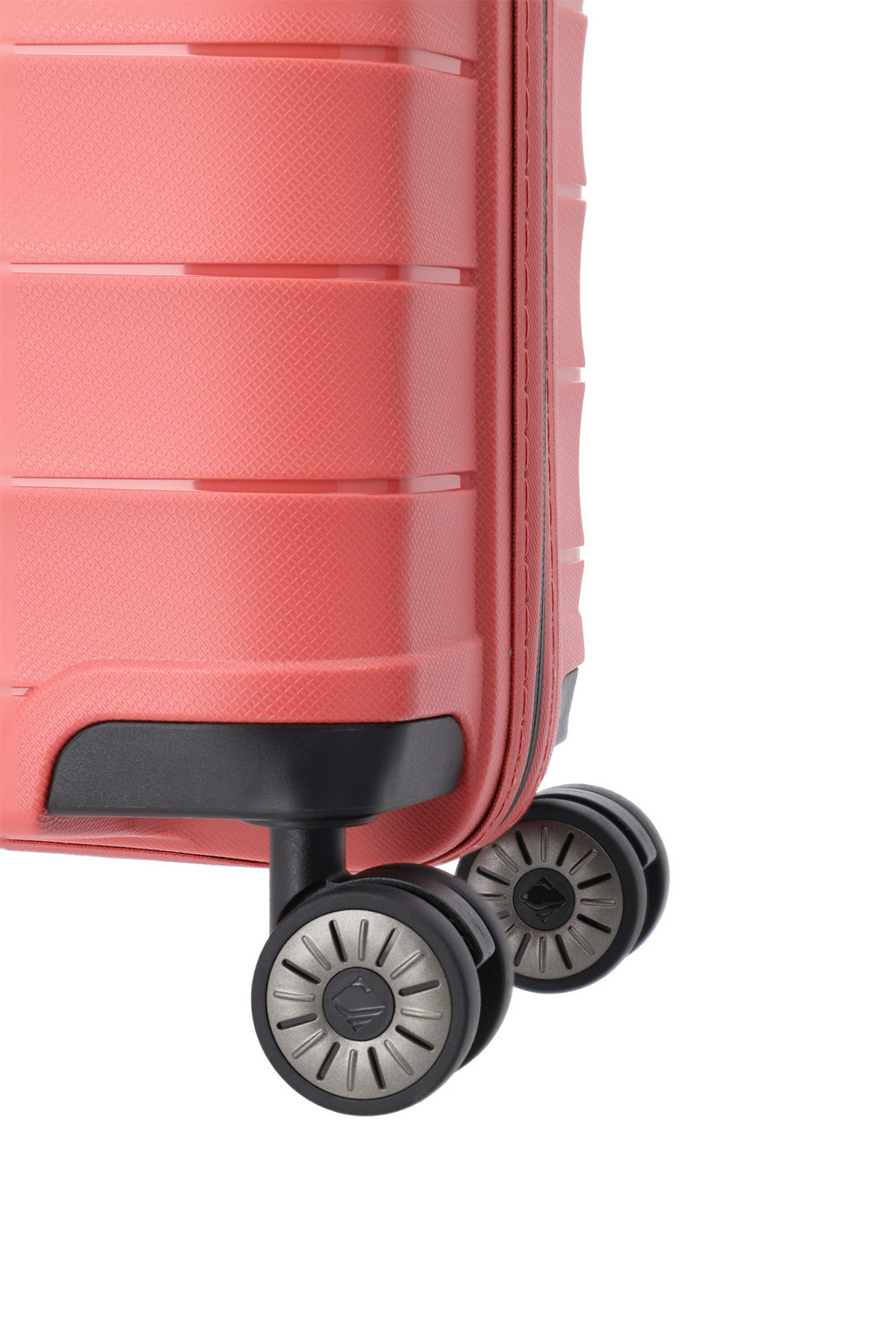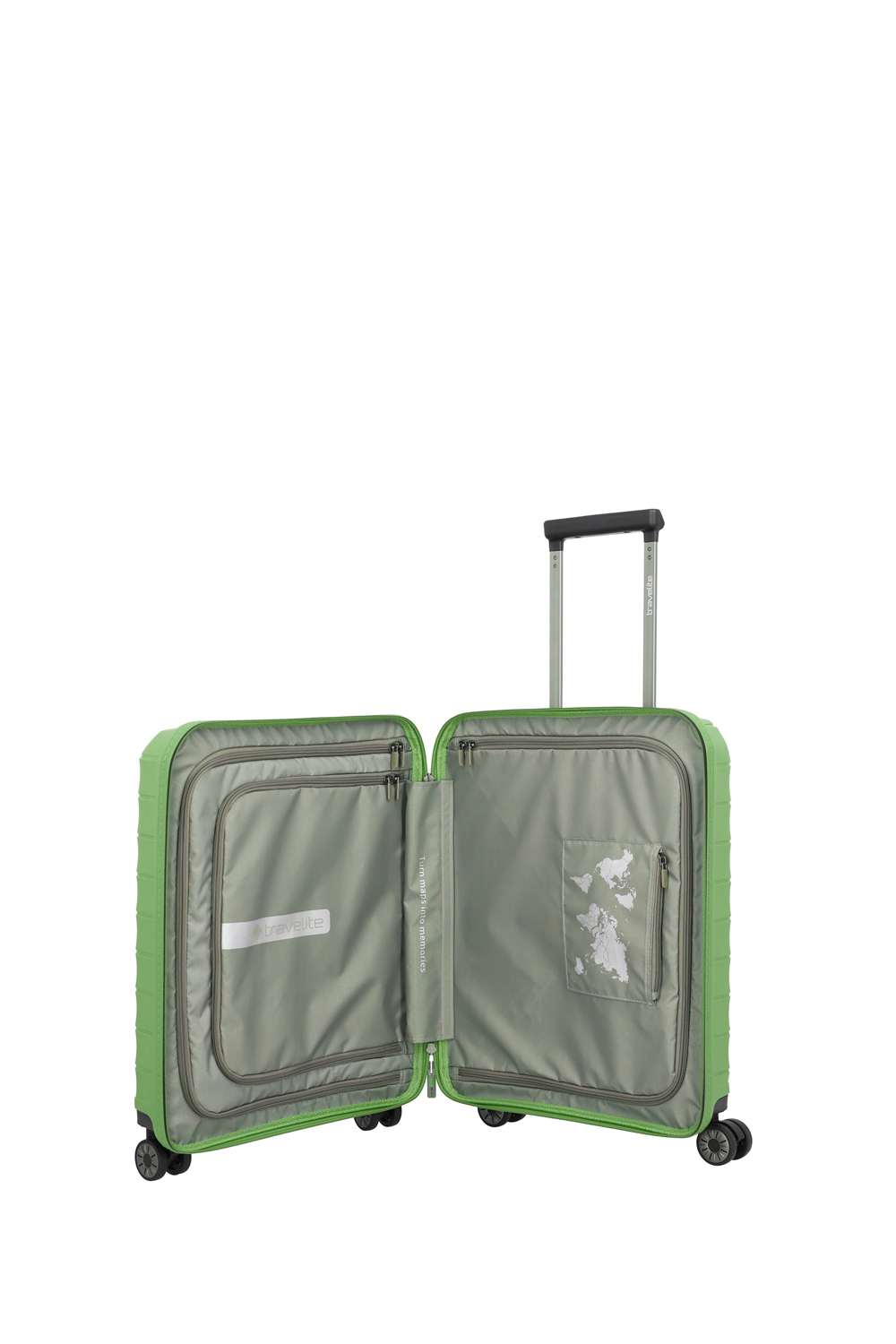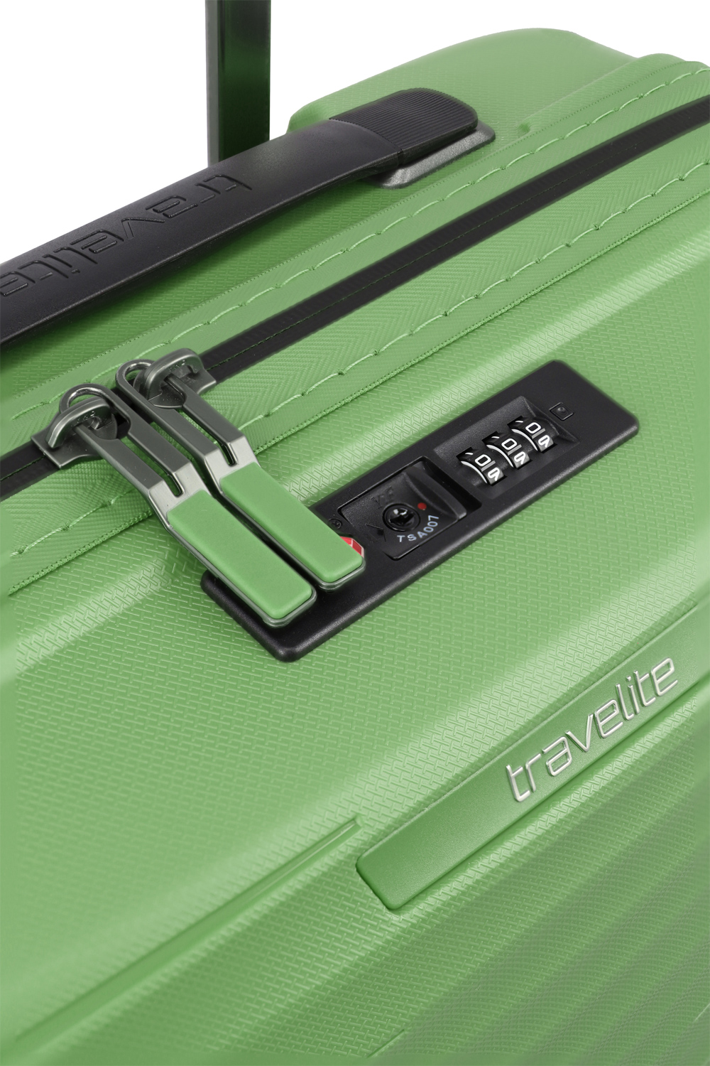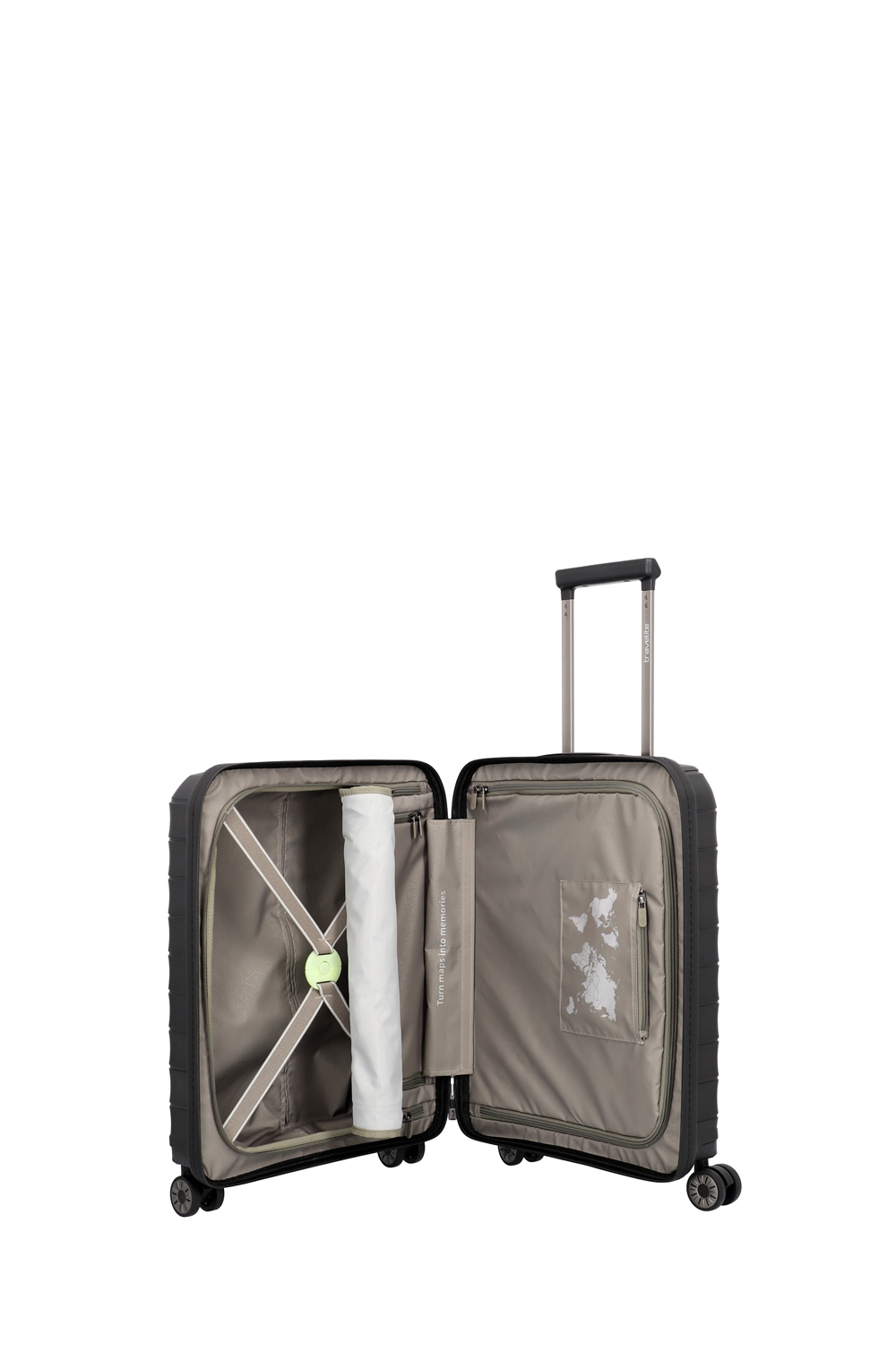 Die Hartschalentrolleys der Serie Mooby sind aus recyceltem Polypropylen (mit Ocean Bound Plastic), das Innenfutter ist aus recyceltem Polyester. Die Oberfläche ist kratzresistent. Alle Trolleys der Mooby-Serie haben ein versenktes TSA Kombinationsschloss und 4 gummierte Doppelrollen.