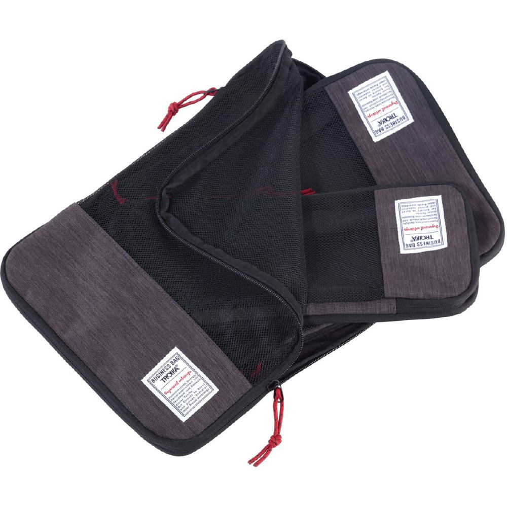 Kompressionstaschen-Set: 3 Packtaschen mit Reißverschluss und zusätzlichem Kompressionsreißverschluss für platzsparendes, geordnetes und knitterfreies Packen von Kleidung in Koffer & Rucksack, 3 Größen: L (Hemden & Hosen), M (Shirts), S (Wäsche & Socken), jeweils mit Netzfenster und Tragegriff. Material: Polyester. Farben: anthrazit, schwarz. Maße: 39 x 27 x 4 x cm, Gewicht: 445 g