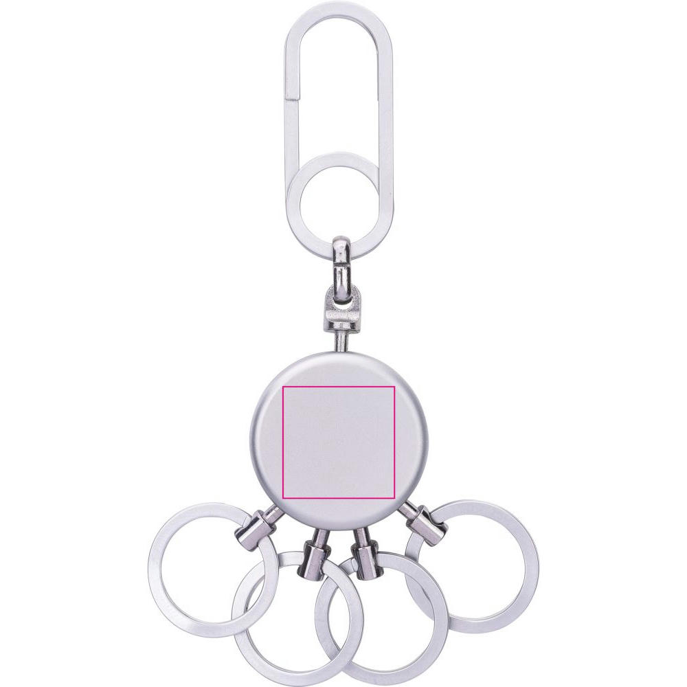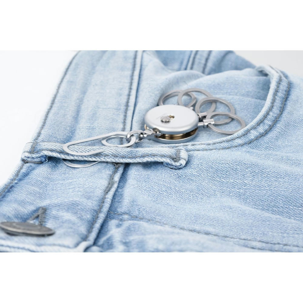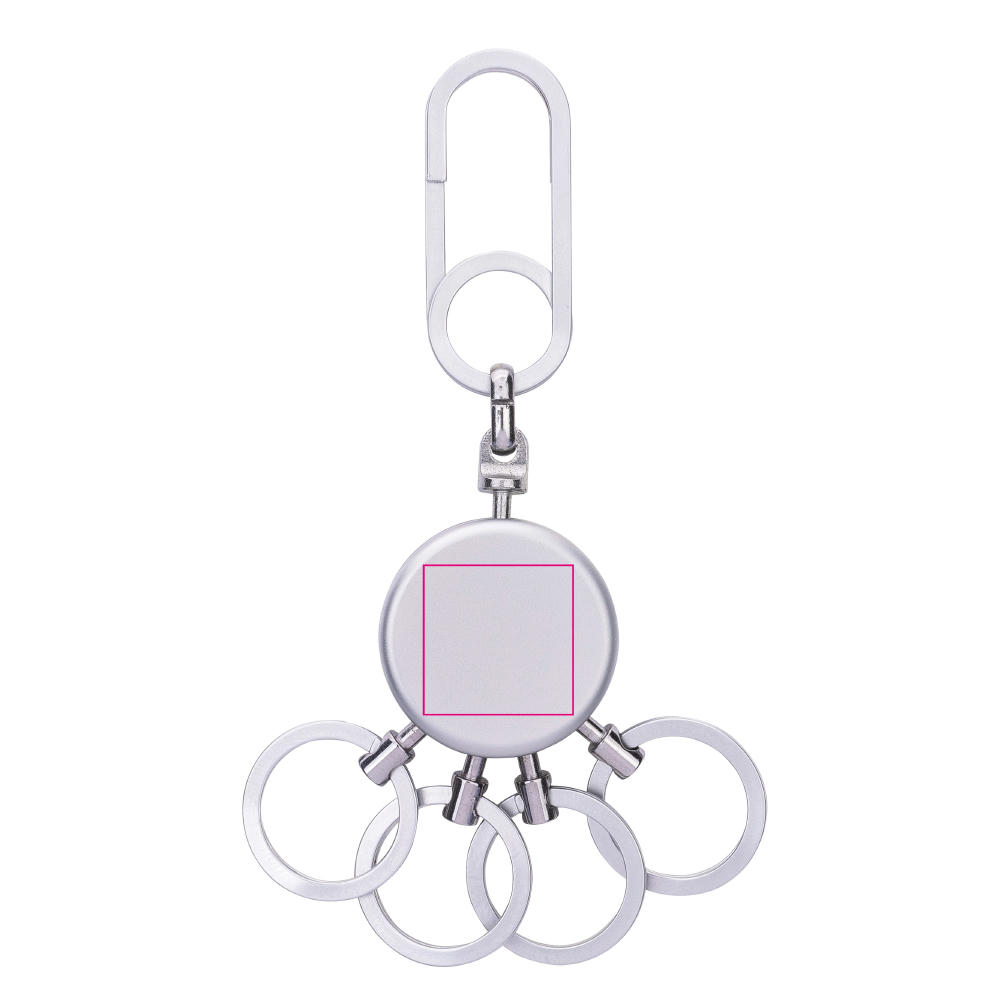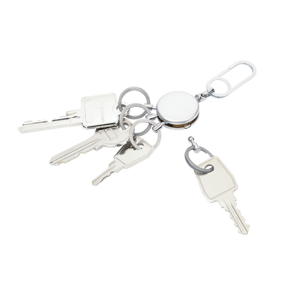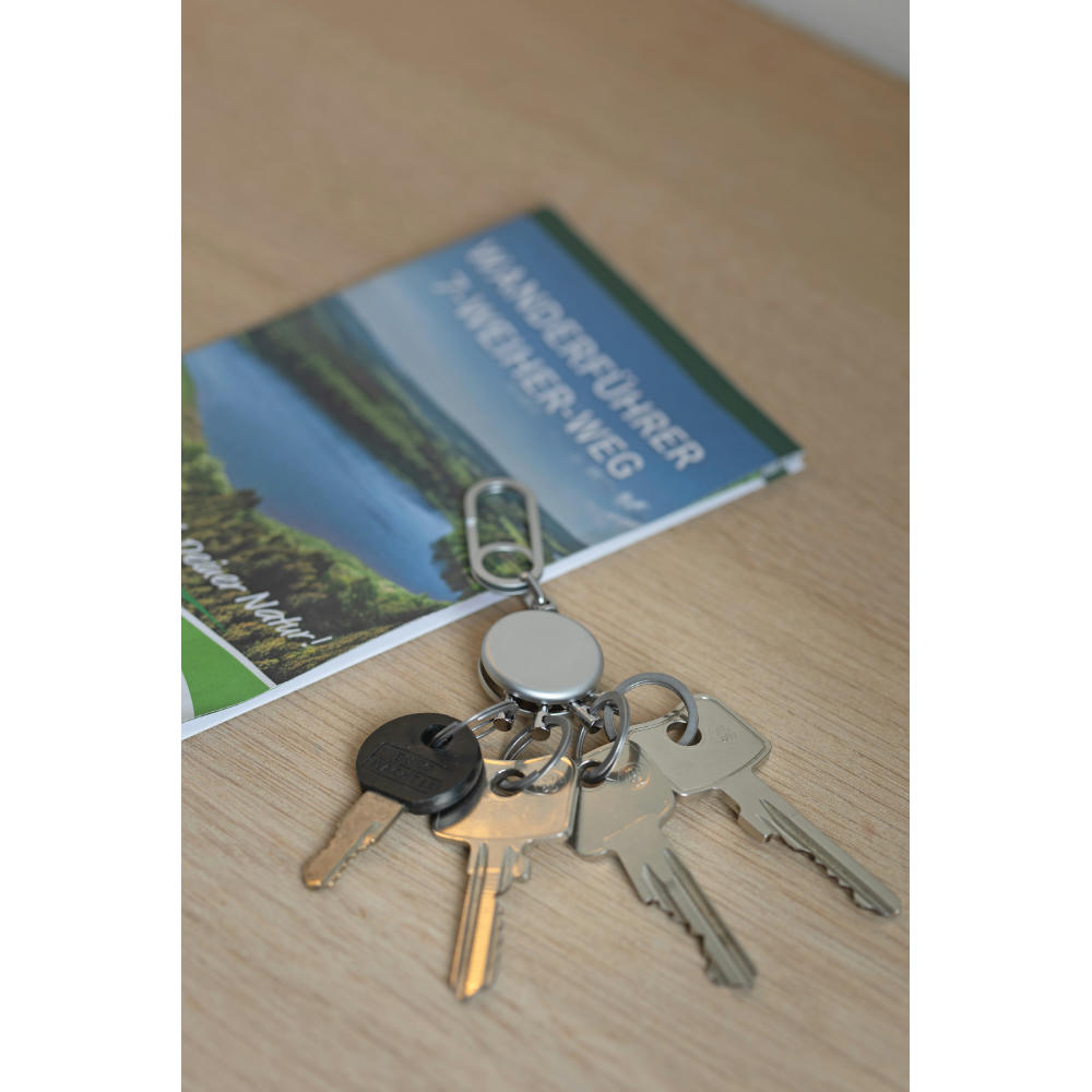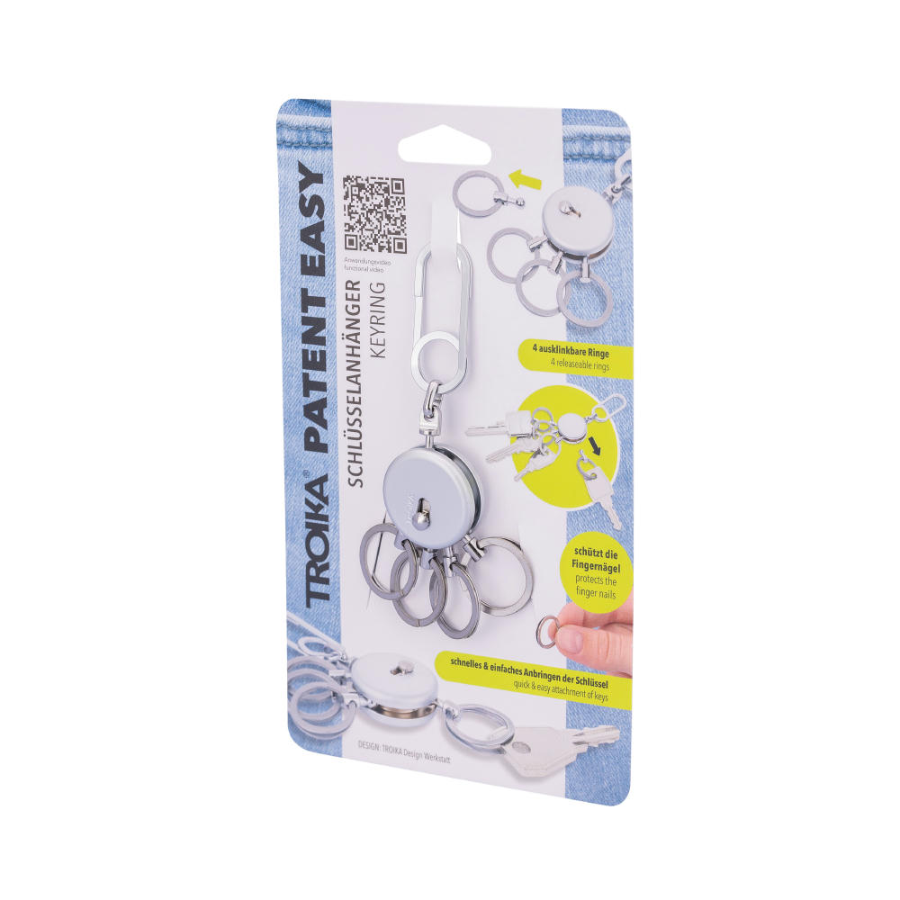 Schlüsselanhänger, rund, inkl. Karabinerhaken, 4 ausklinkbare Ringe, schnelles & einfaches Anbringen der Schlüssel dank patentiertem Öffnungsmechanismus (TROIKA NAIL GUARD), Messing, Metall, verchromt, matt, silberfarben