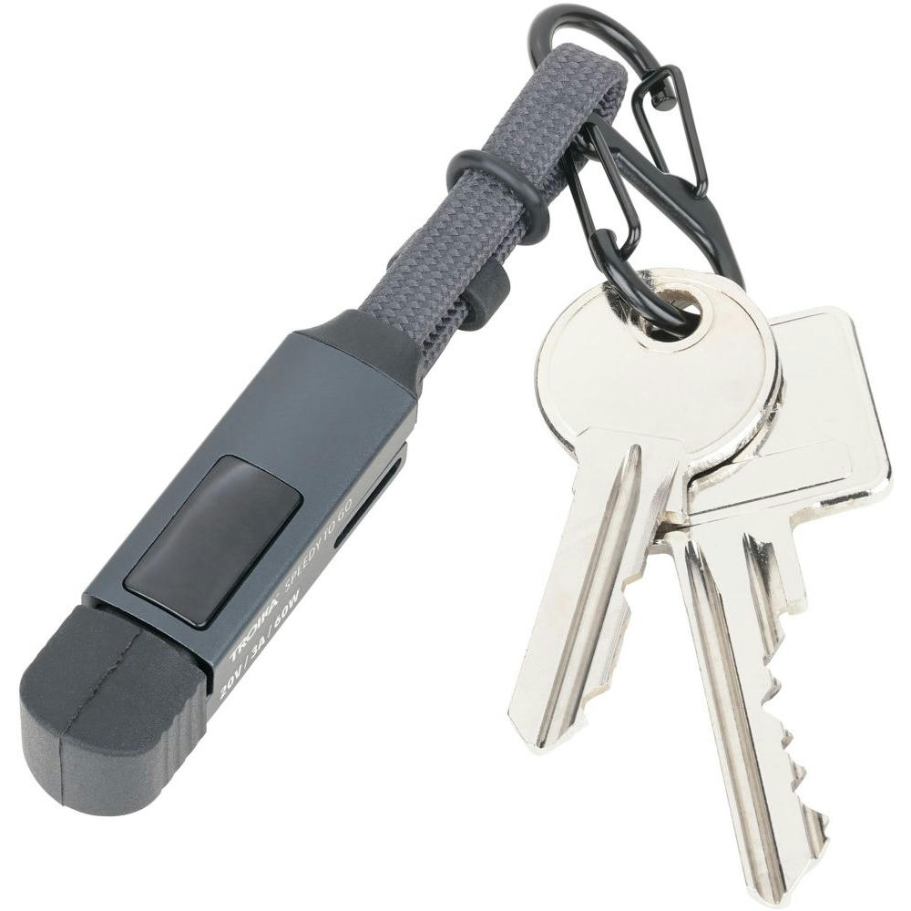 Taschenanhänger mit Ladekabel: High-Speed USB-C 60W PD Power Delivery auf USB-C, mit Datenübertragungsfunktion, volle Ladekapazität: max. 60W|20V|3A (ohne Adapter), abhängig vom zu beladenen Gerät, mit digitaler Anzeige der Ladeleistung, inkl. USB-C auf Lightning Adapter, mit Doppelkarabiner zur Befestigung an Schlüsselbund, (Sport-)Tasche o.Ä., mit Magnetverschluss und Kappe.