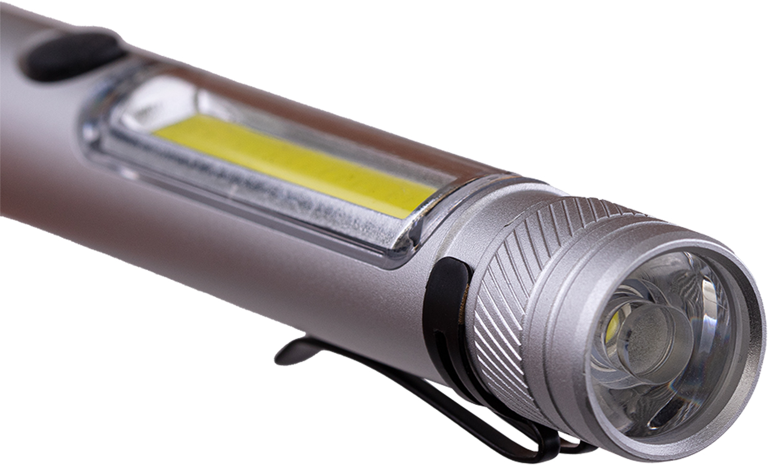 Wiederaufladbare Taschenlampe per USB / Typ C-Kabel mit 2 Leuchtfunktionen: LED Taschenlampe mit 95 Lumen COB-LED Arbeitsleuchte mit 200 Lume Material Aluminium