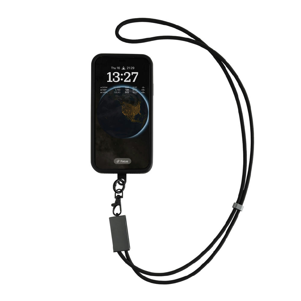 Bleiben Sie geladen mit dem Terra Universal Phone Cord. Dieses vielseitige Zubehör kombiniert den Komfort eines Schlüsselbands mit der Funktionalität eines leistungsstarken Lade- und Datenkabels. Dieses universelle Kabel ist ideal für alle, die viel unterwegs sind, denn es unterstützt sowohl USB-C- als auch iOS-Geräte und ist somit ideal für Nutzer mehrerer Geräte. Type-C-Eingang mit Dual Type-C & iOS-Output, damit Sie eine Vielzahl von Geräten aufladen können. Genießen Sie eine Leistungsabgabe von bis zu 60 W (Type-C zu Type-C) und laden Sie Ihr Gerät mit einer maximalen Stromstärke von 20V/3A auf, um es schneller aufzuladen. Synchronisieren Sie Daten und genießen Sie die Kompatibilität mit Android Auto ( nur Type-C zu Type-C). Gesamter recycelter Inhalt: 61% basierend auf dem Gesamtgewicht des Artikels. Die RCS-Zertifizierung gewährleistet eine vollständig zertifizierte Lieferkette für die recycelten Materialien. Verpackt in einer plastikfreien Umschlagverpackung. PVC-frei.