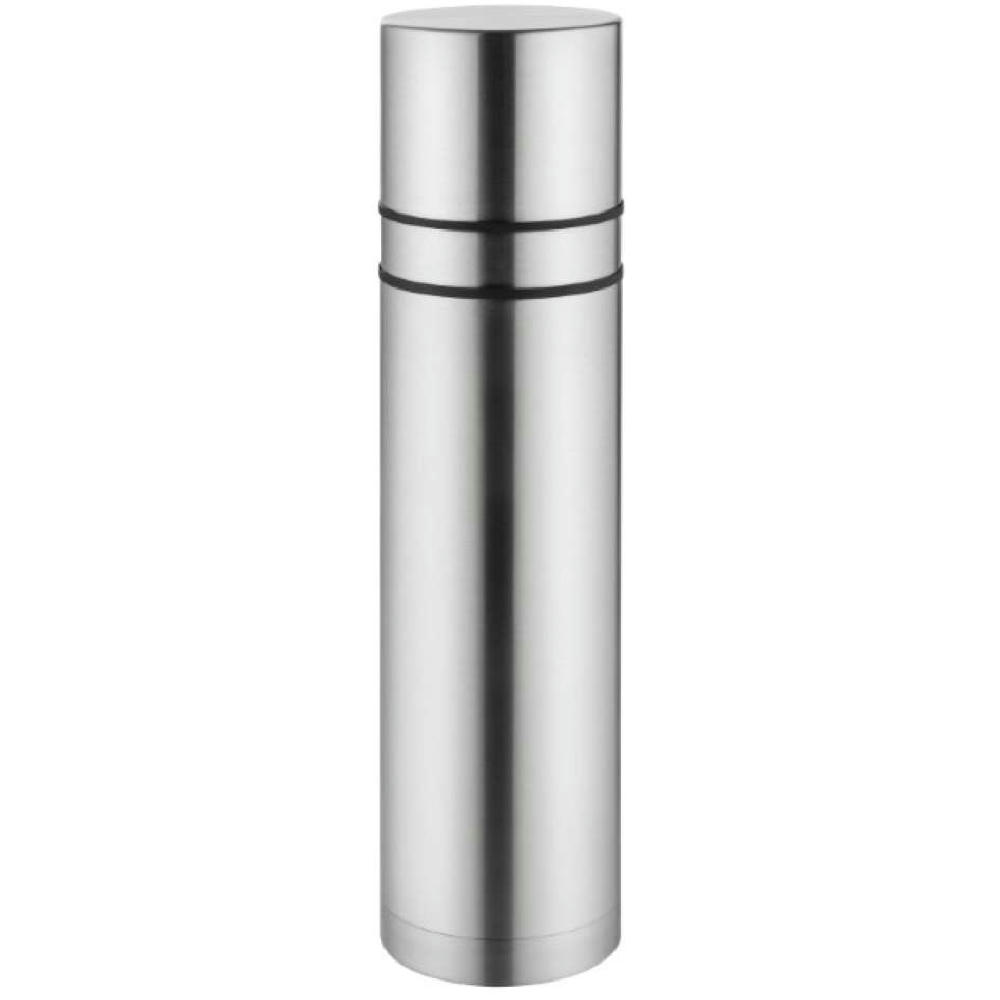 Thermokanne mit 2 Bechern. Designausführung. Auslaufsicherer Verschluss, doppelwandig (Stahl / Stahl), Vakuumisolierung.