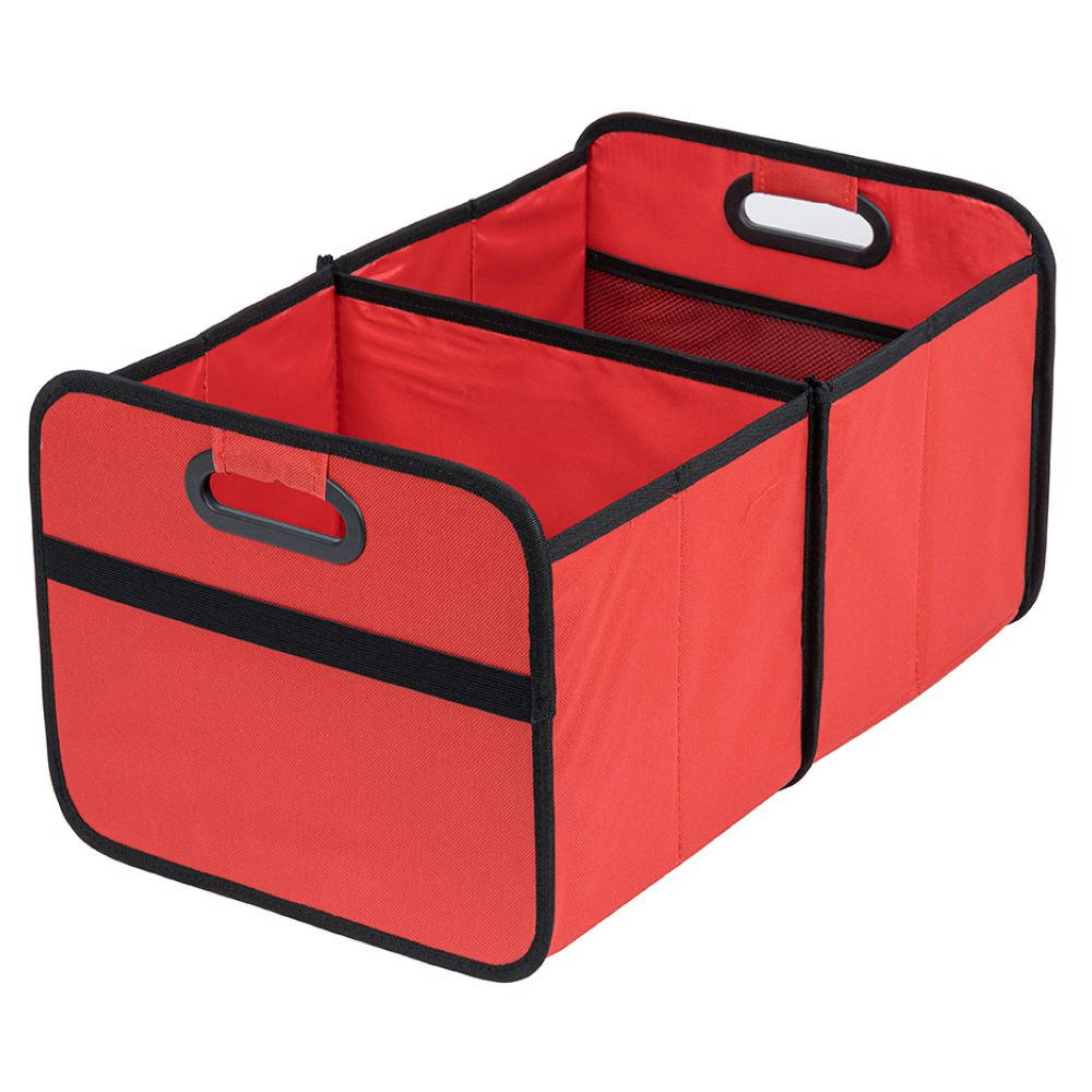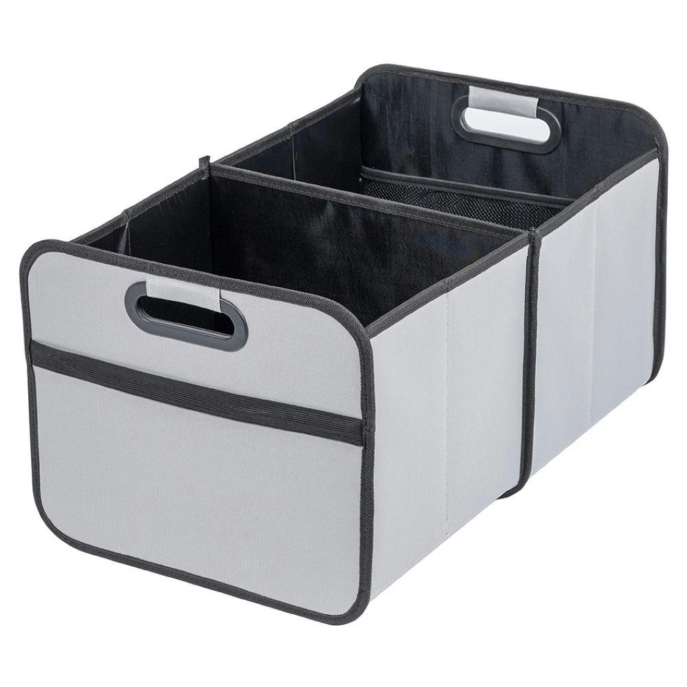 Der zusammenfaltbare Oraganizer mit integrierten Tragegriffen bietet viel Platz zum Verstauen von Einkäufen, Autozubehör, Büromaterial und vielem mehr. Die Faltbox beinhaltet zwei Fächer mit je einem Netzeinsteckfach und ist durch den verstärkten Einlegeboden äußerst robust und gut geeignet für schweren Inhalt. Maße: 32 x 27 x 50 cm