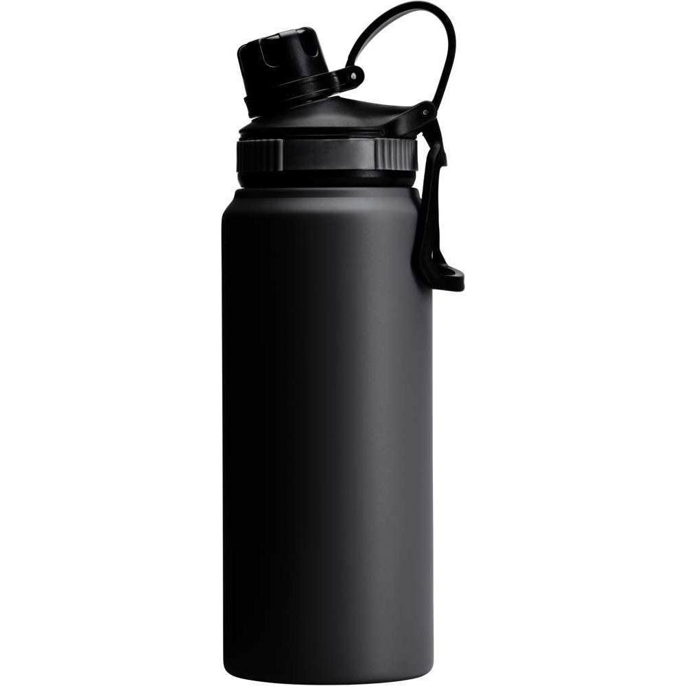Edelstahl-Trinkflasche mit großer Trinköffnung und Tragegriff. Pulverbeschichtet.