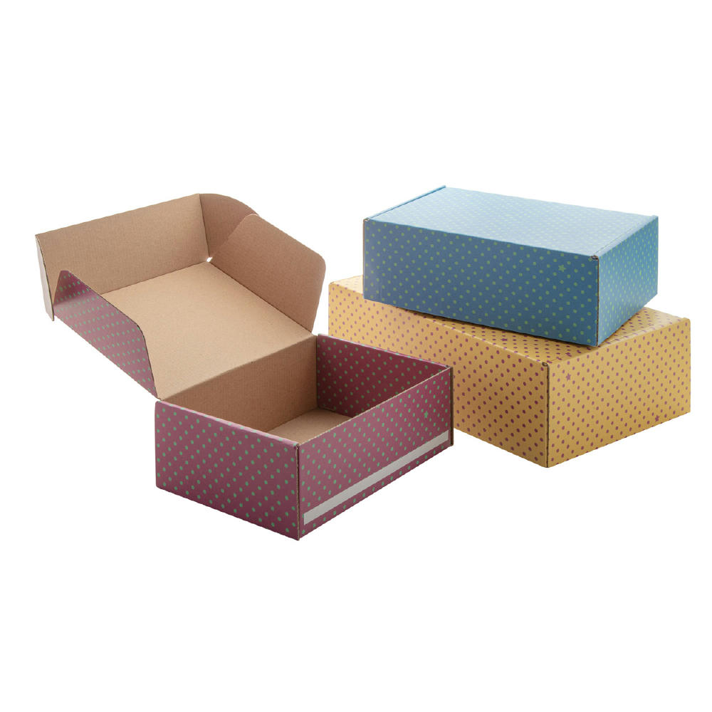 Individuelle Versandbox aus Wellpappe mit selbstklebendem Verschlussstreifen und vollfarbiger Bedruckung auf der Außenseite. Die Lieferung erfolgt flach verpackt. Preis inkl. vollflächigem 4c- Druck.