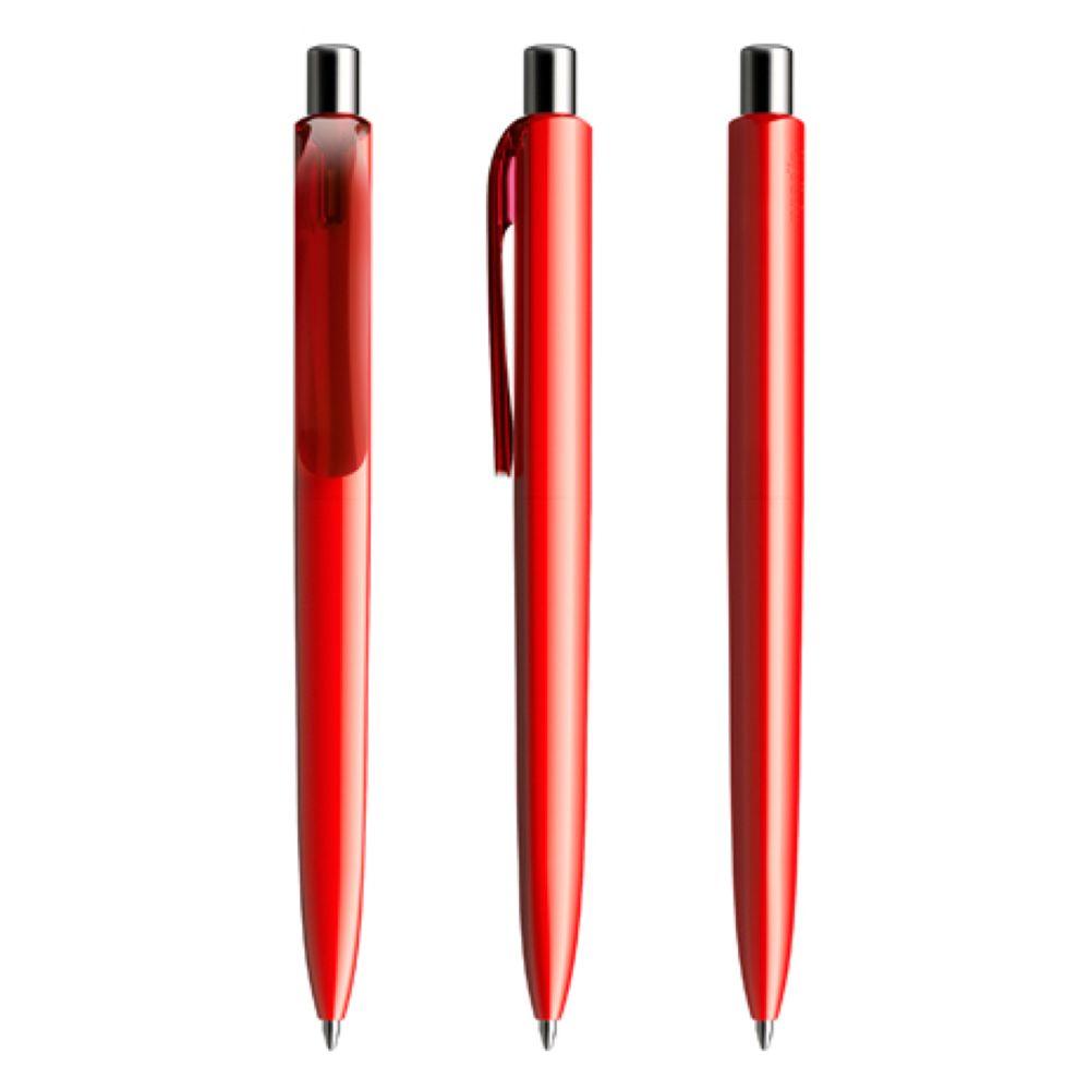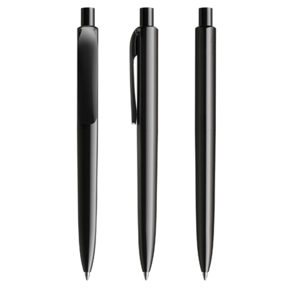 Die Ikone eines klassischen Schreibgerätes. Die zeitlose Interpretation der Dreiecksform, reduziert auf das Wesentliche und funktional bis ins kleinste Detail. Dem DS8 gelingt die Symbiose von exzellentem Schreibkomfort und werthaltiger Kommunikation. Seine zahlreichen Personalisierungsoptionen, Oberflächen, Farben und Materialien machen ihn zu einem vielseitig einsetzbaren Markenbotschafter. In der Ausführung mit vollfarben poliertem Gehäuse (PPP) lieferbar in vier Standardfarben, hergestellt mit einem Rezyklatanteil von 100% (Schwarz und Weiß) oder 50% (alle anderen Farben), gekennzeichnet mit dem internationalen Recycling-Symbol. Sondergehäusefarben ab 5.000 Stück. Fünf Druckflächen für Werbeanbringungen stehen zur Verfügung. Clip und Druckknopf sind in transparenter Oberfläche (bei Weiß und Schwarz sind Clip und Knopf auch vollfarben). Polierter oder satinierter Metalldruckknopf als Option. Ausgestattet mit der umweltfreundlichen auswechselbaren FLOATING BALL® lead free-Großraummine 1.0, Schreiblänge 5.000 m, Schreibfarbe Blau oder Schwarz.
